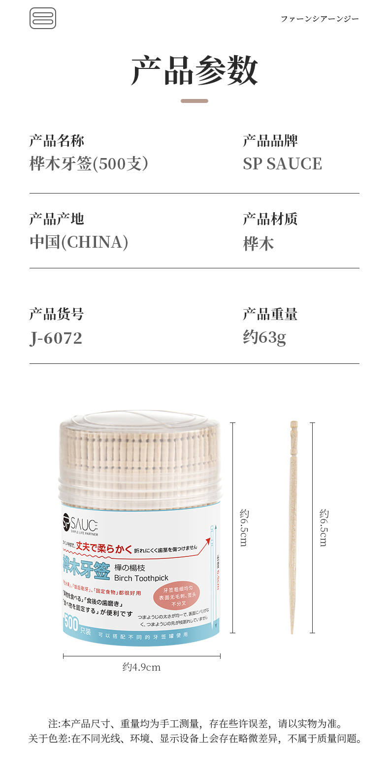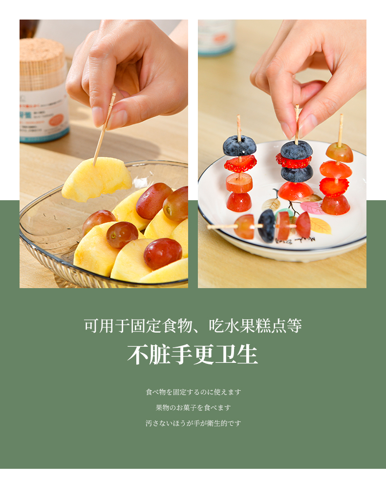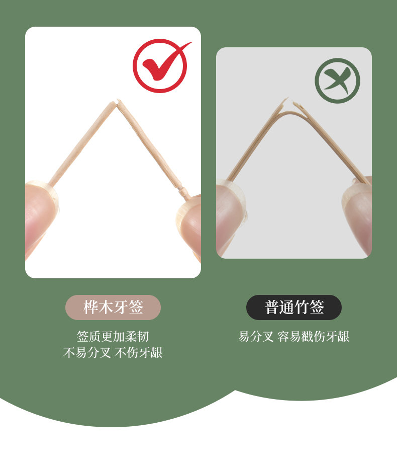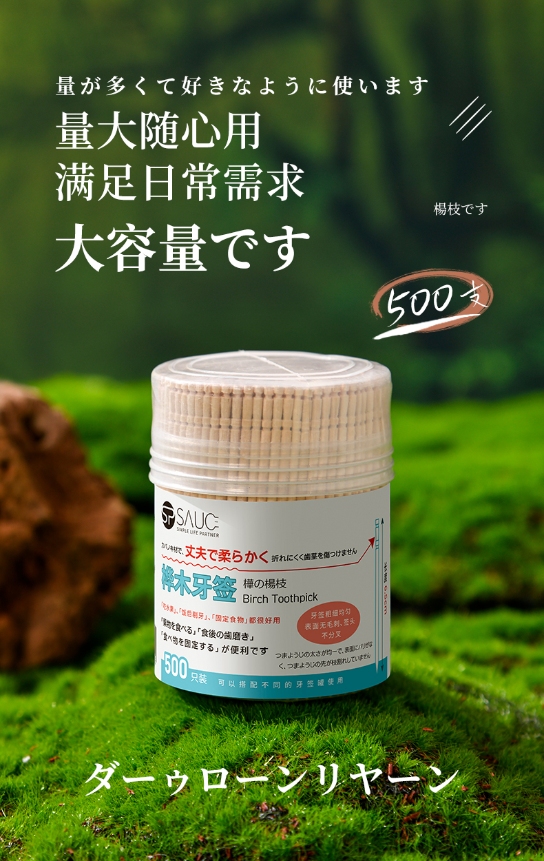 桦木牙签(500支) 一次性桦木牙签单头尖细实木剔牙棒加粗水果签带牙签桶