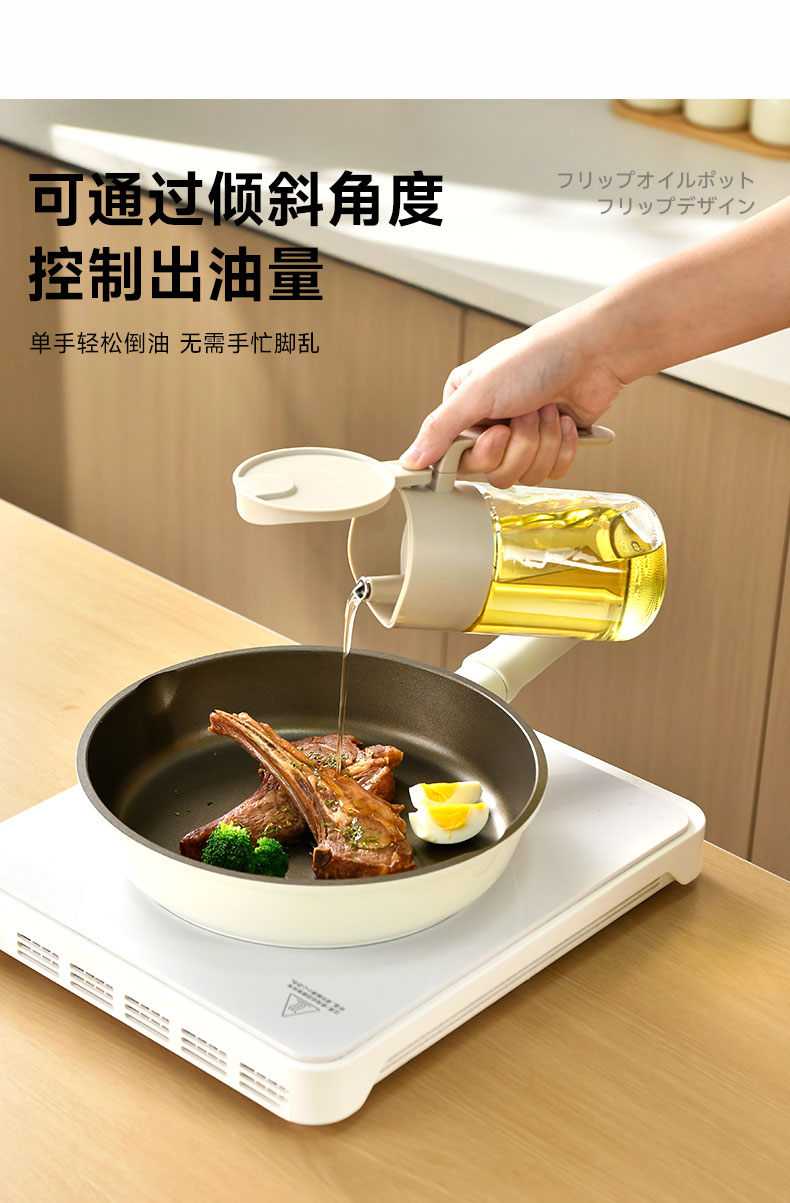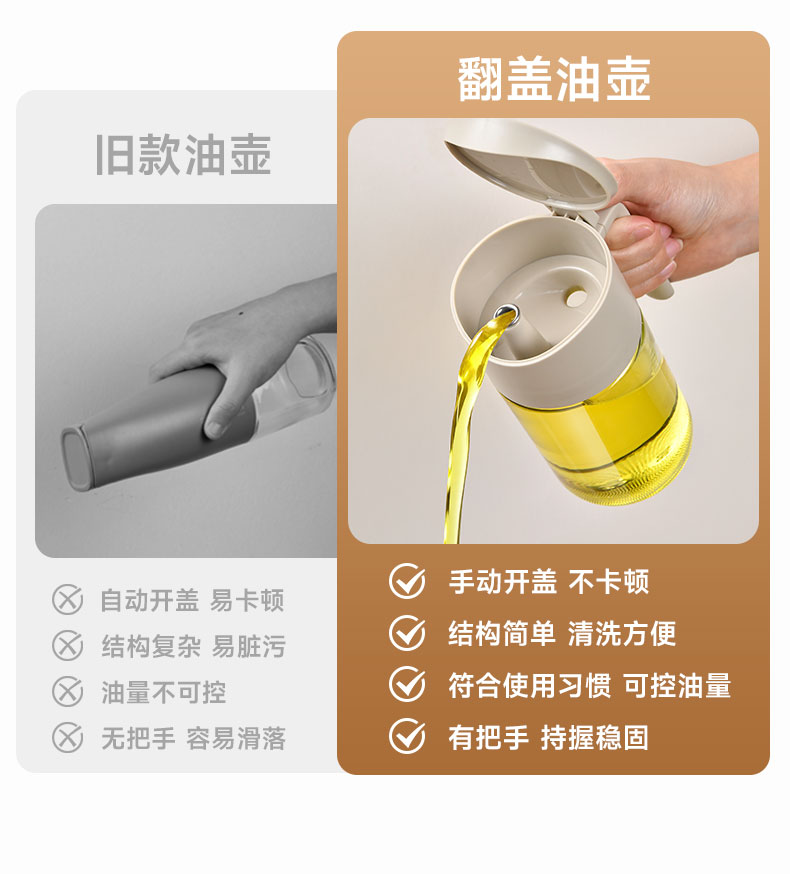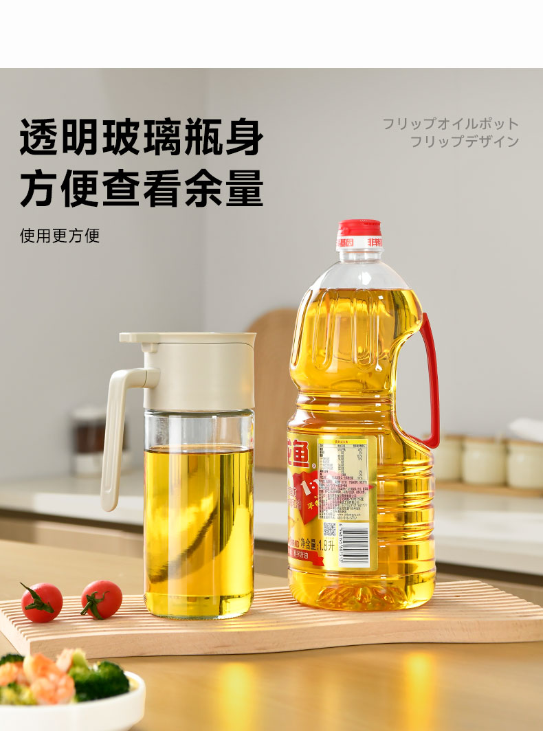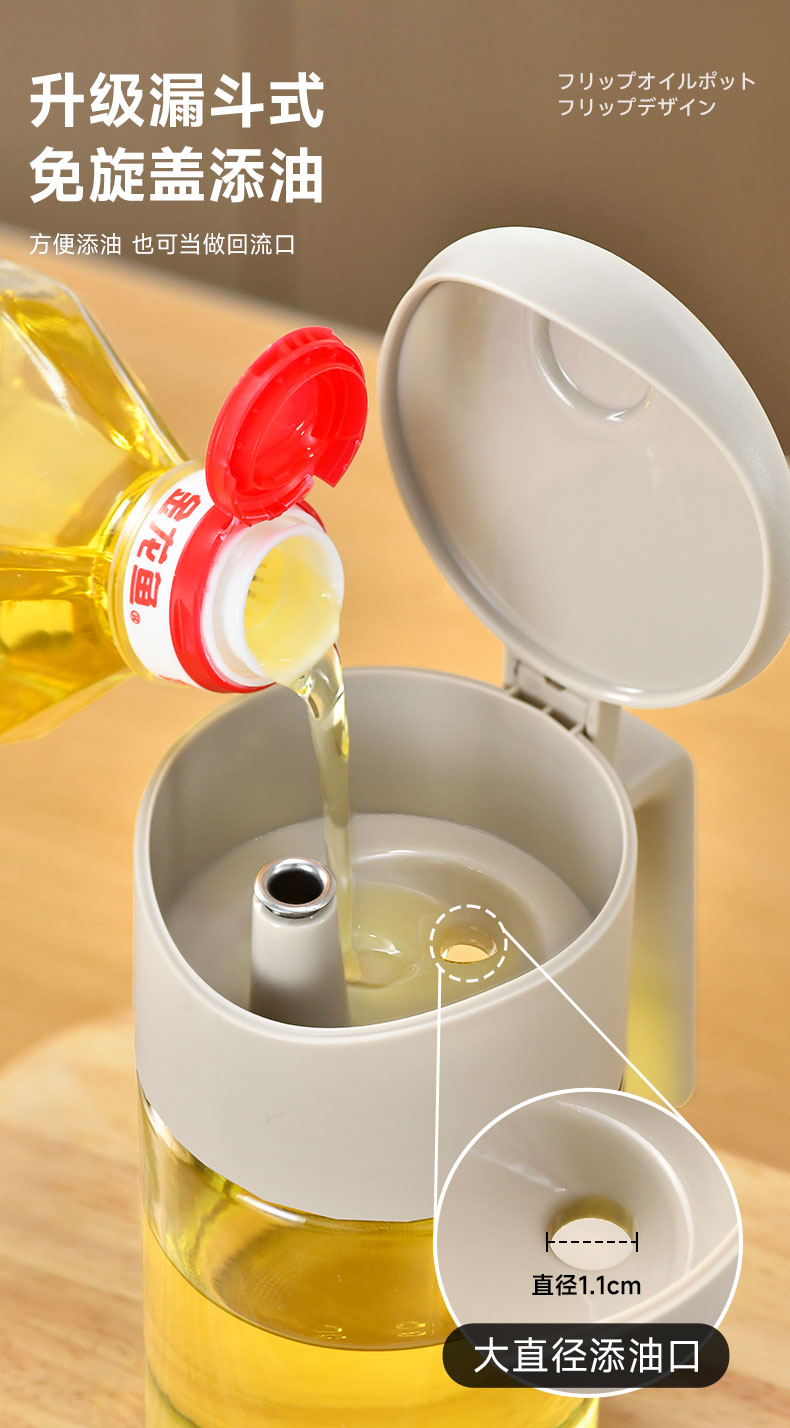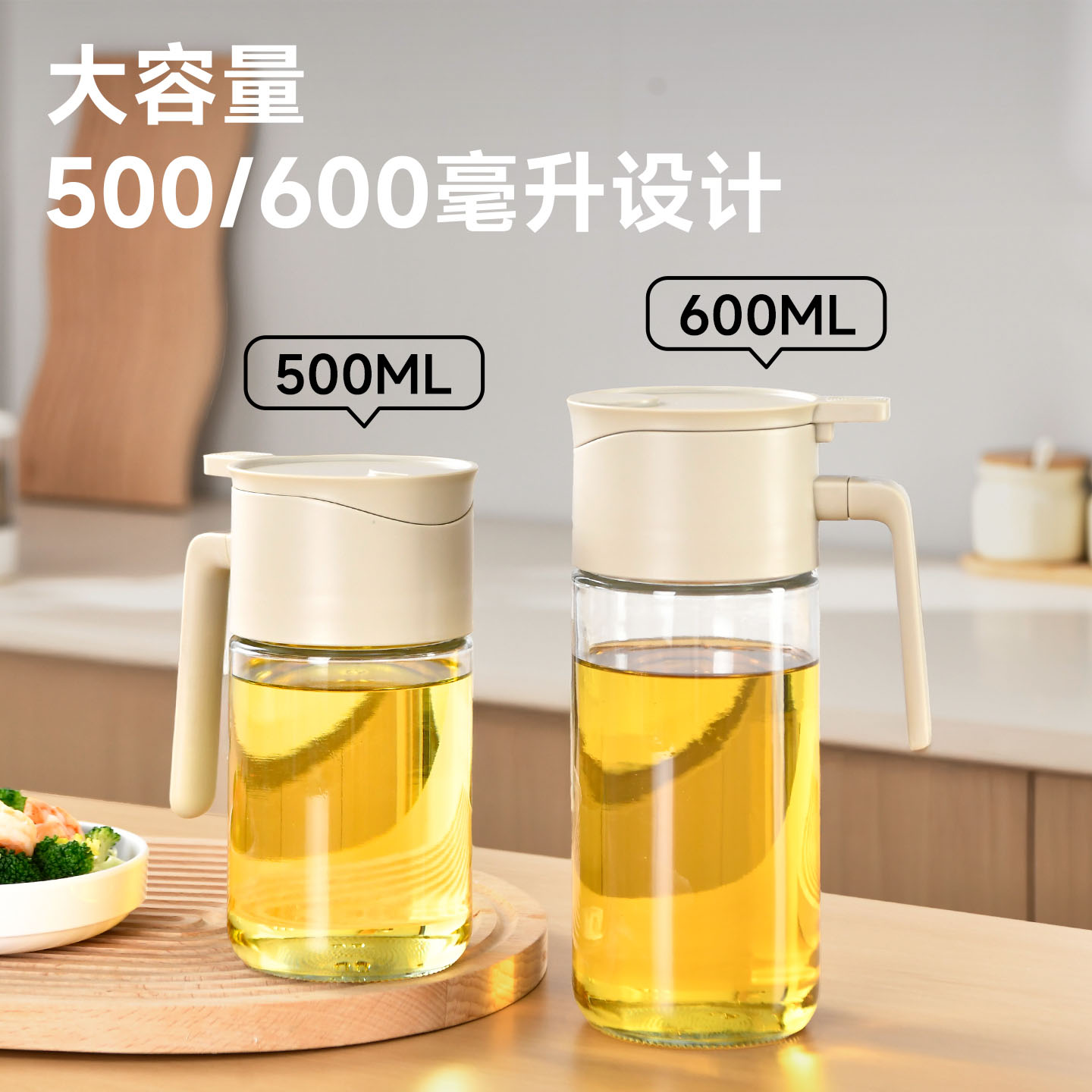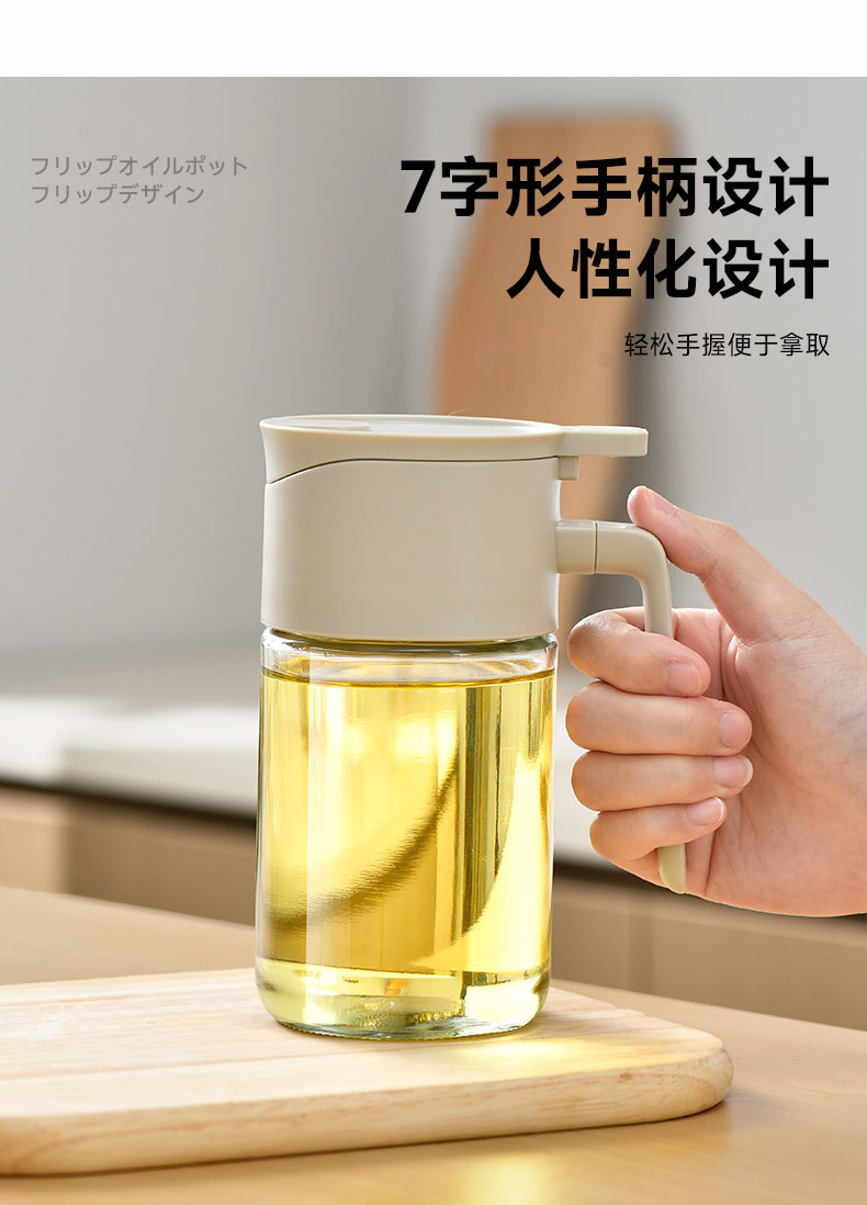 翻盖油壶 500ML 油壶厨房家用油罐新款油壶油瓶玻璃油壶不挂油家用厨房大容量油壶
