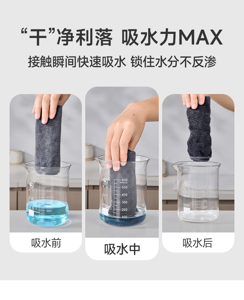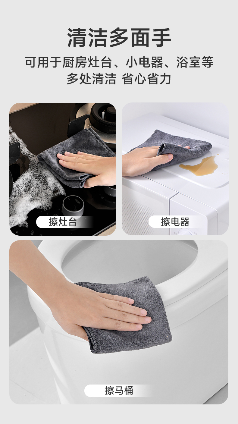 纤维抹布(3条入) 纤维抹布厨房灶台水槽多功能清洁抹布家用吸水吸油桌面清洁布