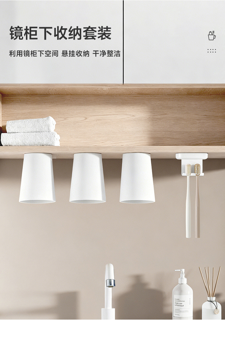 翻转牙刷架(单钩) 镜柜下牙刷置物架壁挂式免打孔电动牙刷牙具收纳架