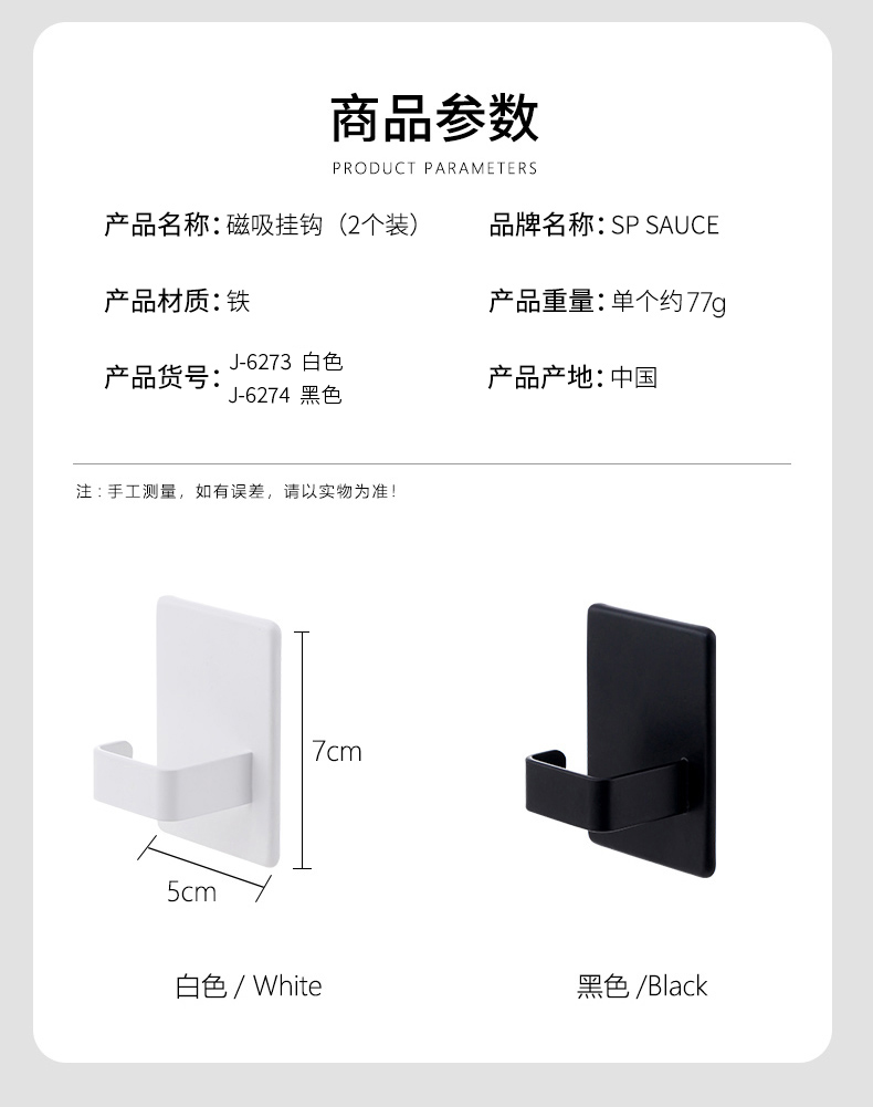 磁吸挂钩(2个装) 简约磁吸强力承重免打孔磁铁挂钩冰箱贴厨房置物无痕粘钩2个装