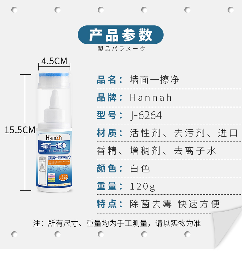墙壁去污剂120g 水槽墙面清洁剂擦白墙壁去污膏除霉除手脚印蜡笔画笔涂鸦清洗剂