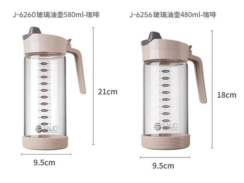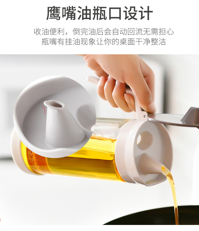 玻璃油壶480ml(升级版) 油壶家用厨房装油瓶油罐玻璃防漏酱油瓶酱油醋调料瓶不漏油大容量