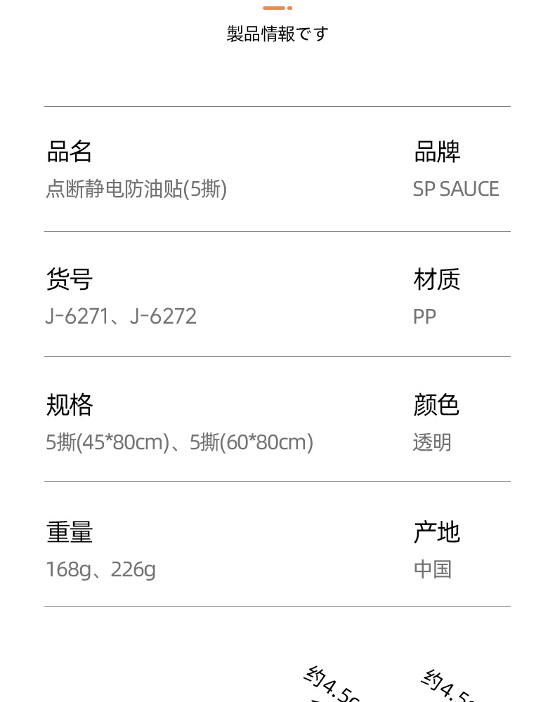 点断静电防油贴 5撕(60*80cm) 厨房防油贴纸透明静电橱柜防水防油耐高温灶台贴膜防油烟自粘墙纸