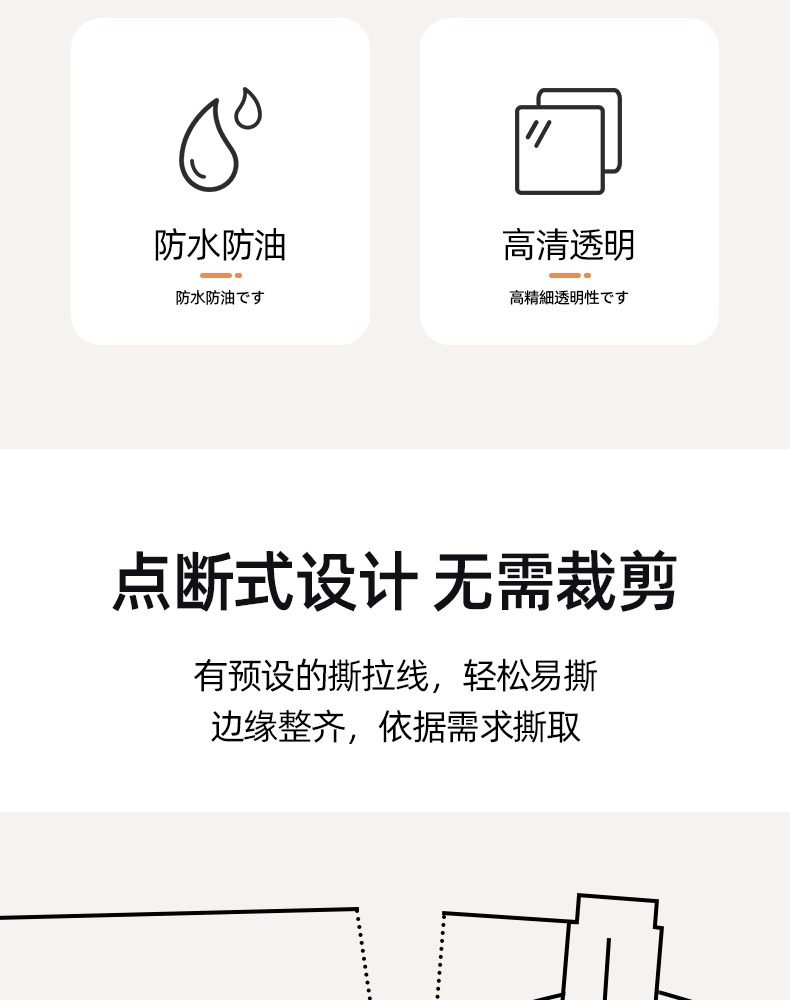 点断静电防油贴 5撕(45*80cm) 厨房防油贴纸透明静电橱柜防水防油耐高温灶台贴膜防油烟自粘墙纸