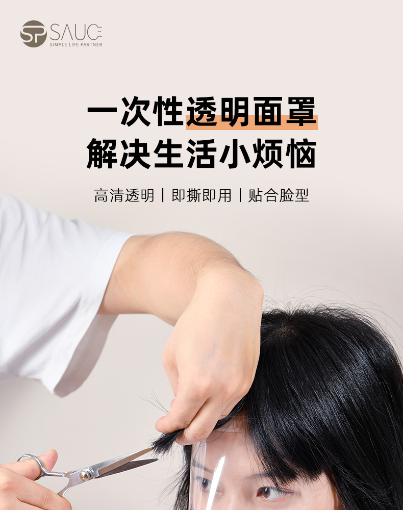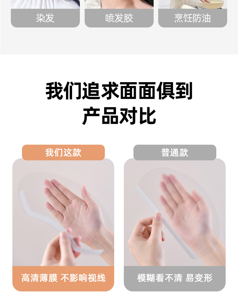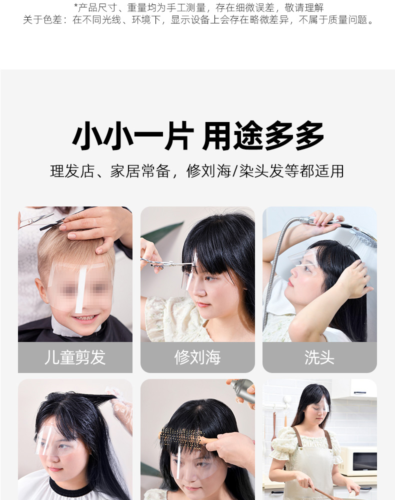 一次性透明面罩(20片装) 刘海贴一次性防碎发透明染发面罩理发剪发神器儿童额头遮脸挡板贴片