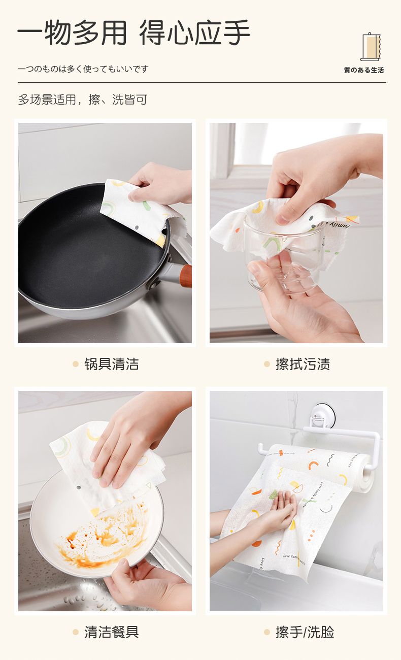 白色懒人抹布(50节) 懒人抹布厨房用纸一次性抹布干湿两用吸油纸洗碗布可水洗加厚