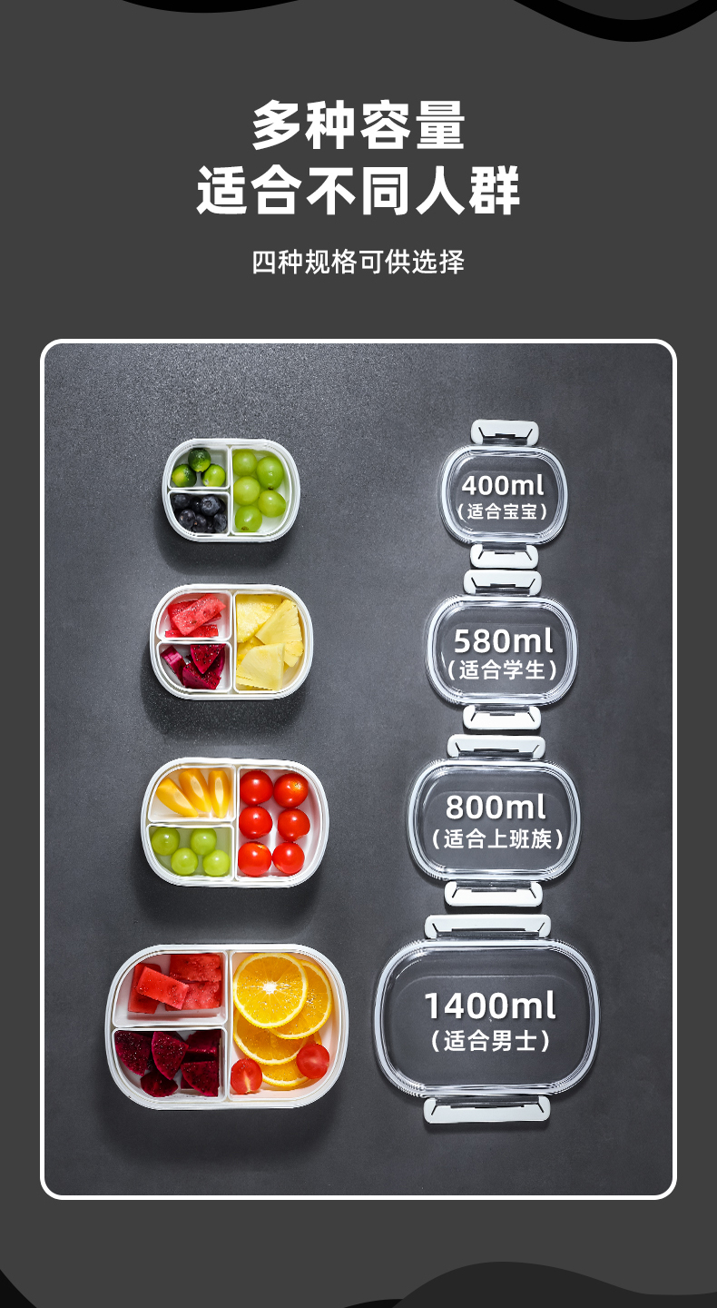 分格密封保鲜盒580ml 水果便当盒小学生专用食品分隔保鲜盒儿童外出便携野餐盒
