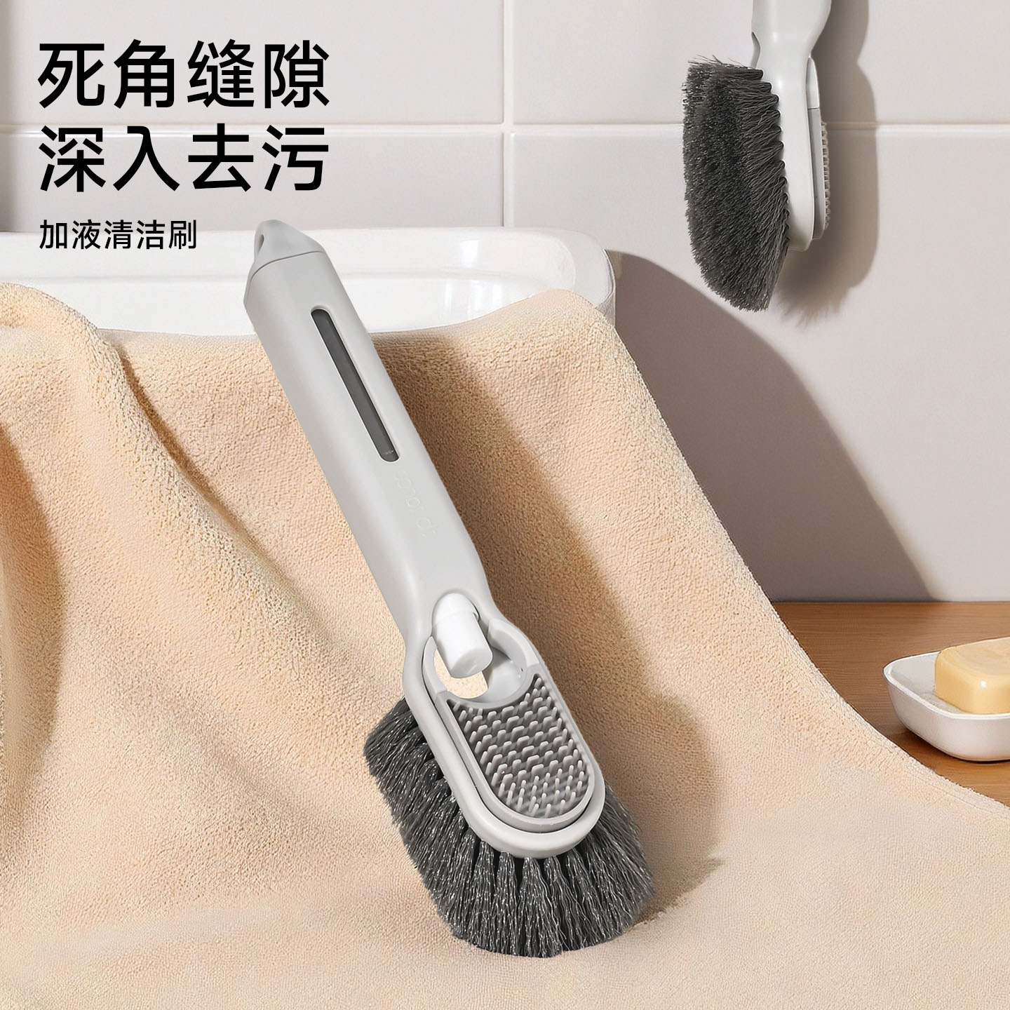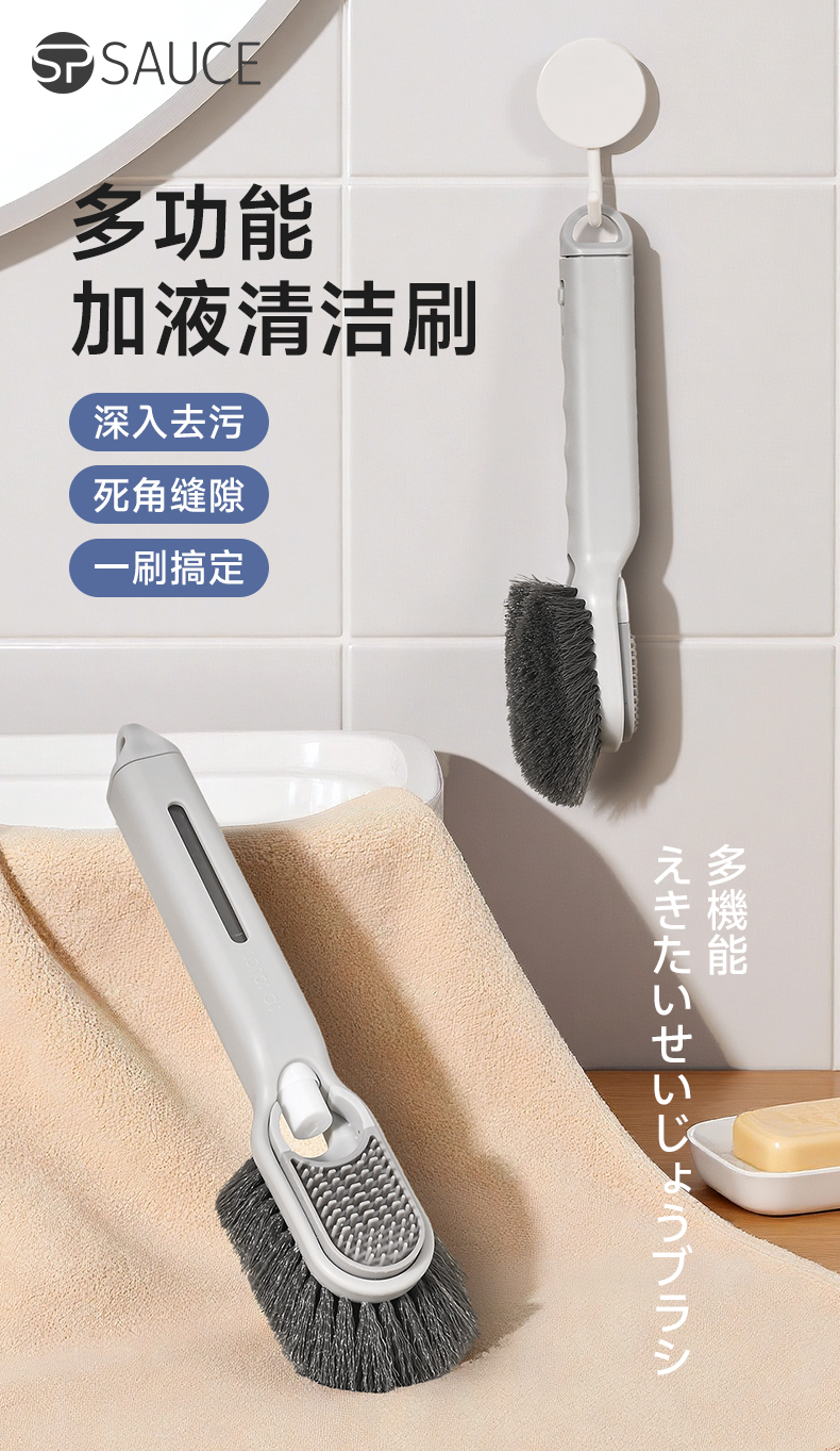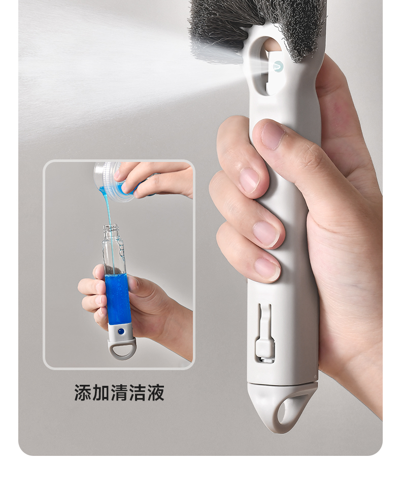 短柄加液清洁刷 多功能加液清洁刷无死角硬毛卫生间厕所刷地旋转小刷子瓷砖缝隙刷