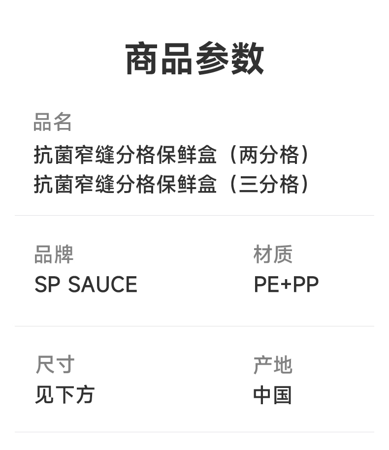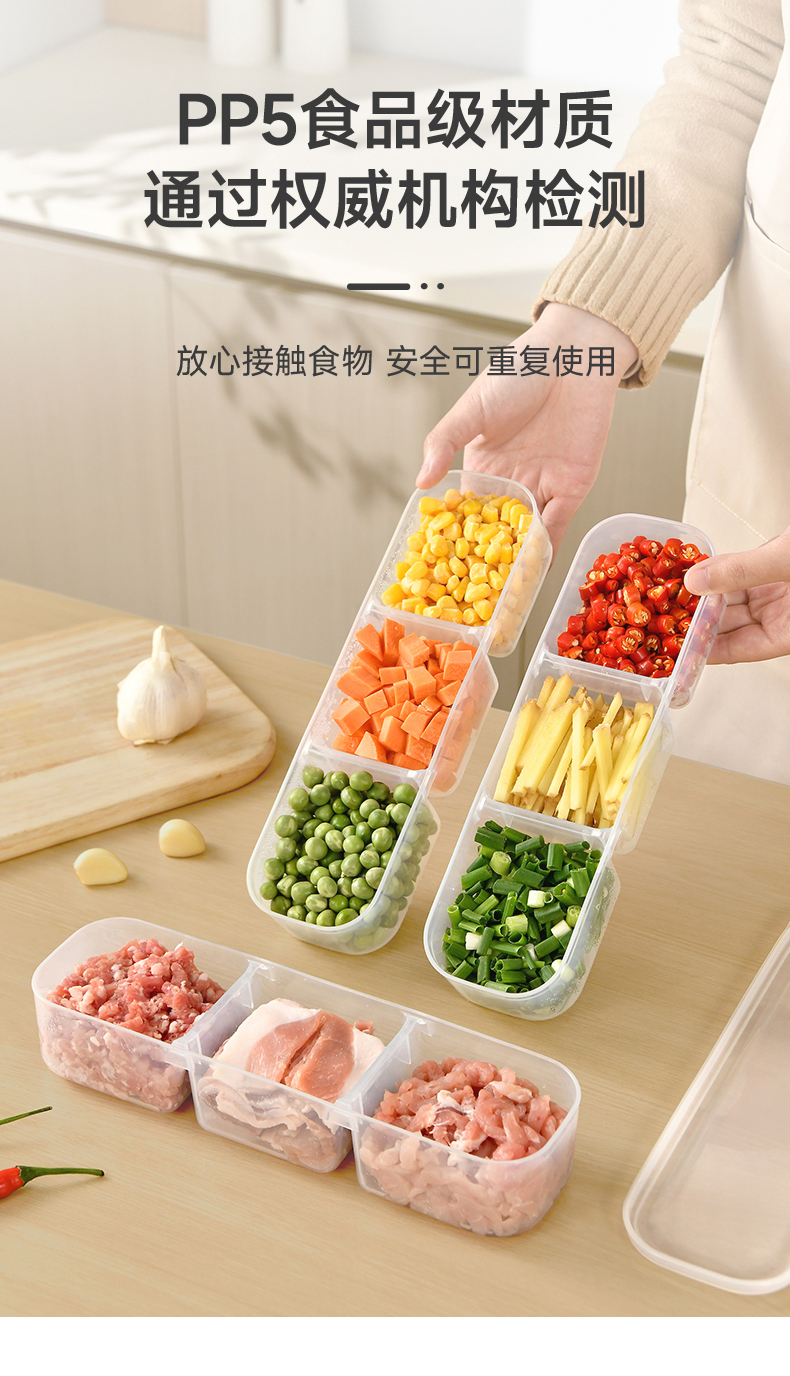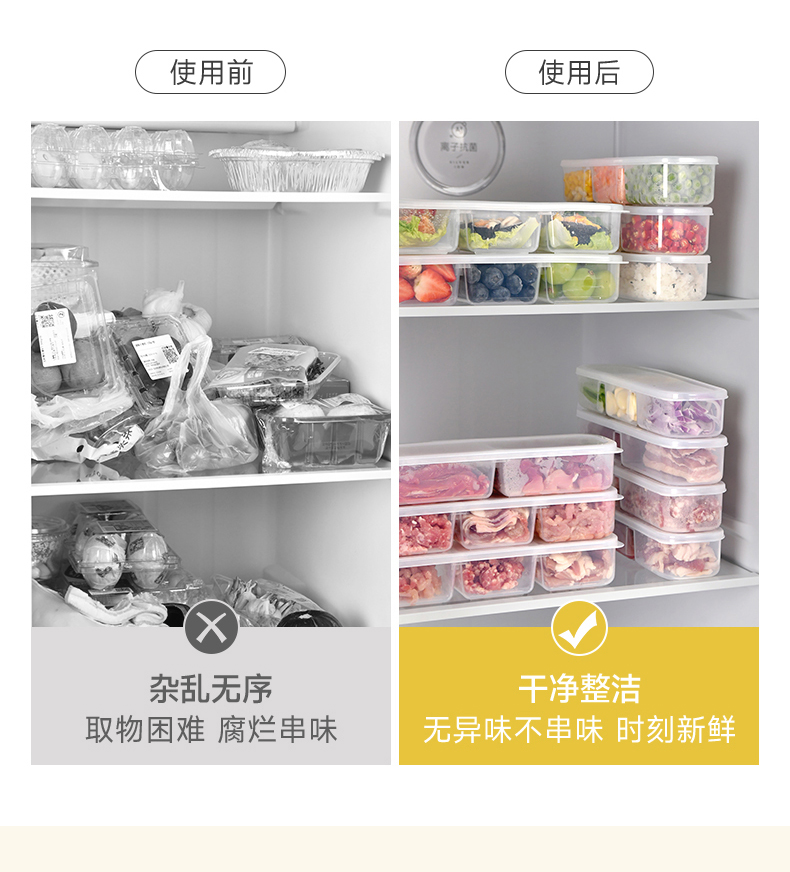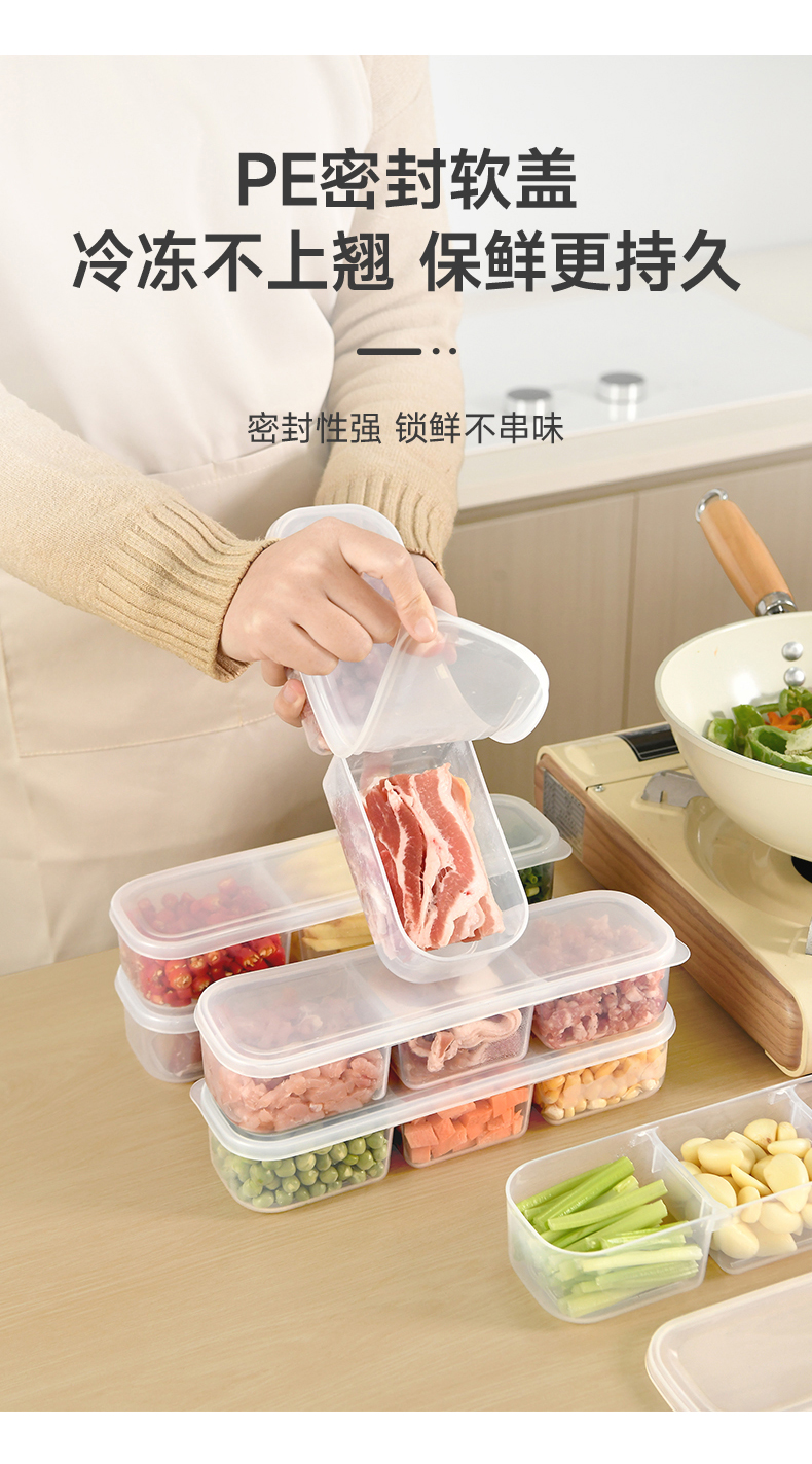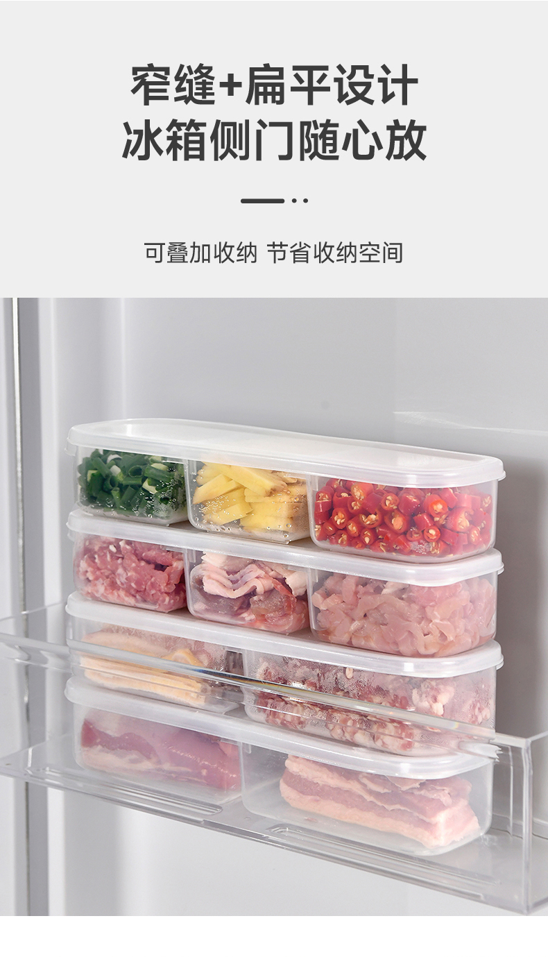 抗菌窄缝分格保鲜盒(两分格) 窄缝冰箱分格保鲜盒分装冰箱冻肉家用冷冻食品级二三分隔收纳盒子
