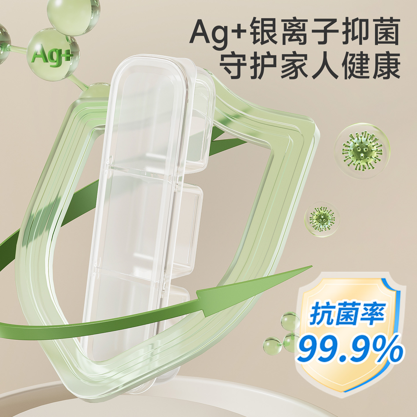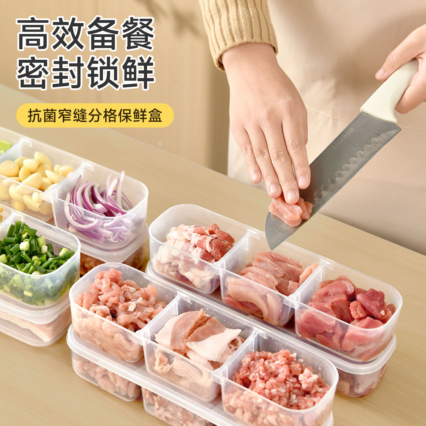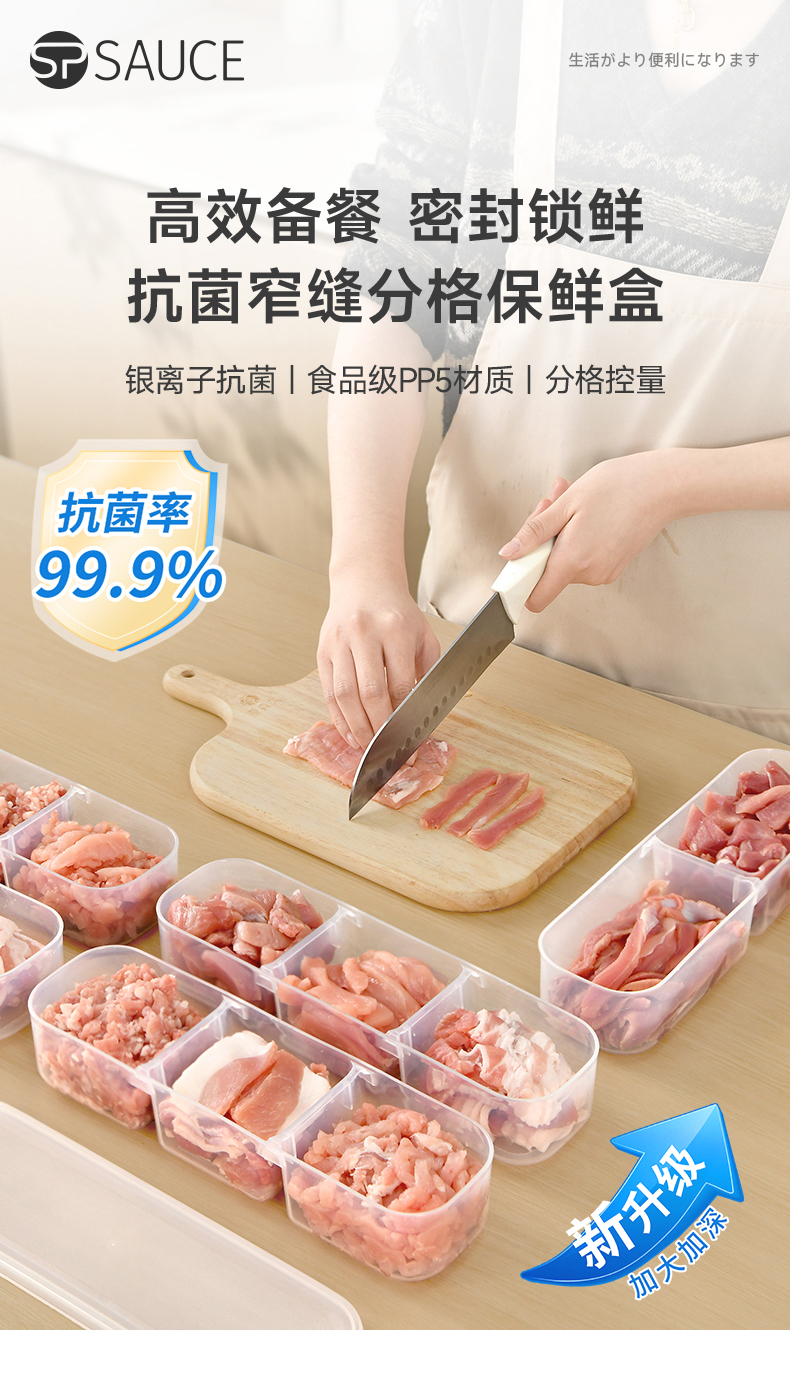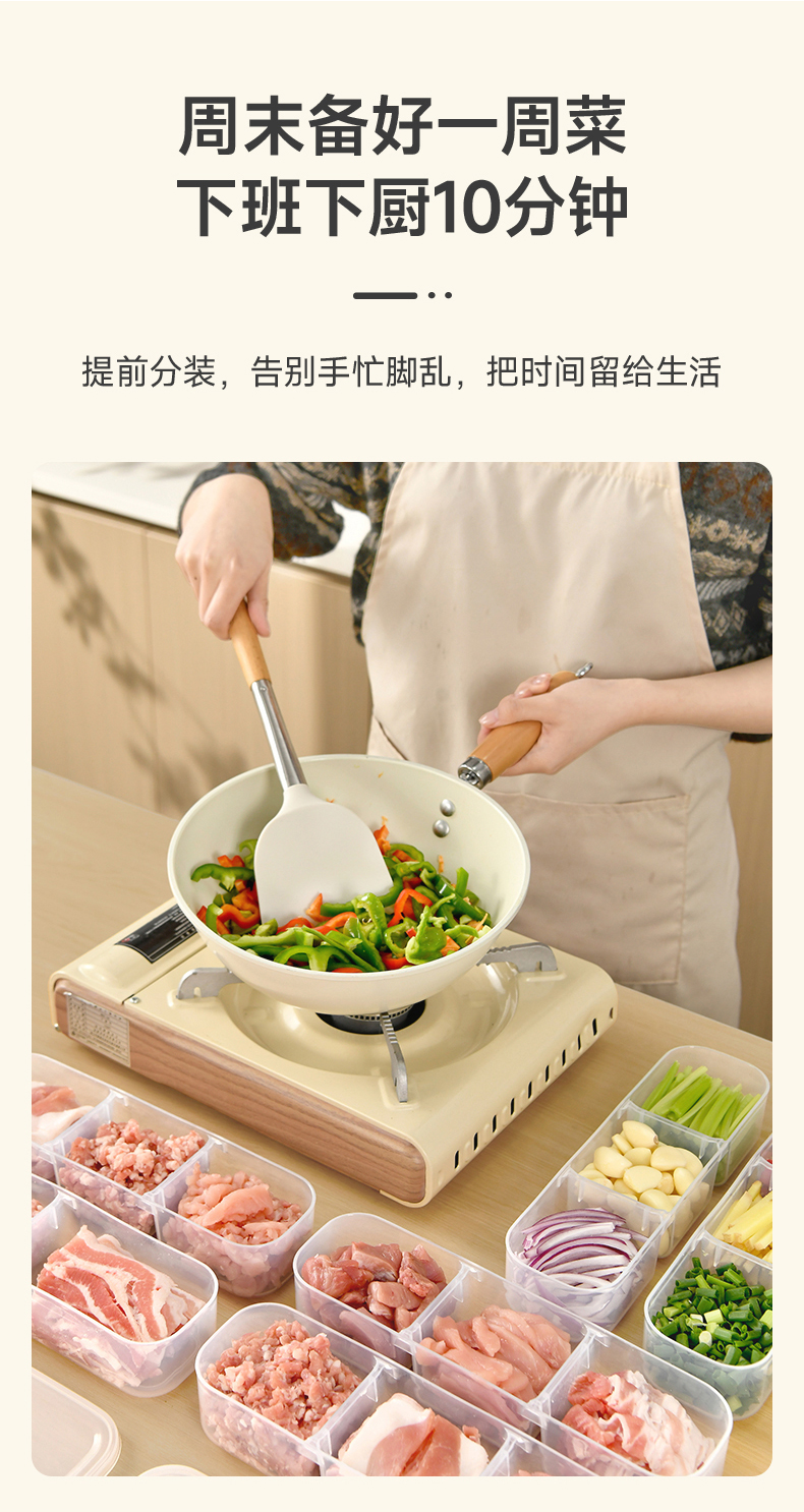 抗菌窄缝分格保鲜盒(两分格) 窄缝冰箱分格保鲜盒分装冰箱冻肉家用冷冻食品级二三分隔收纳盒子