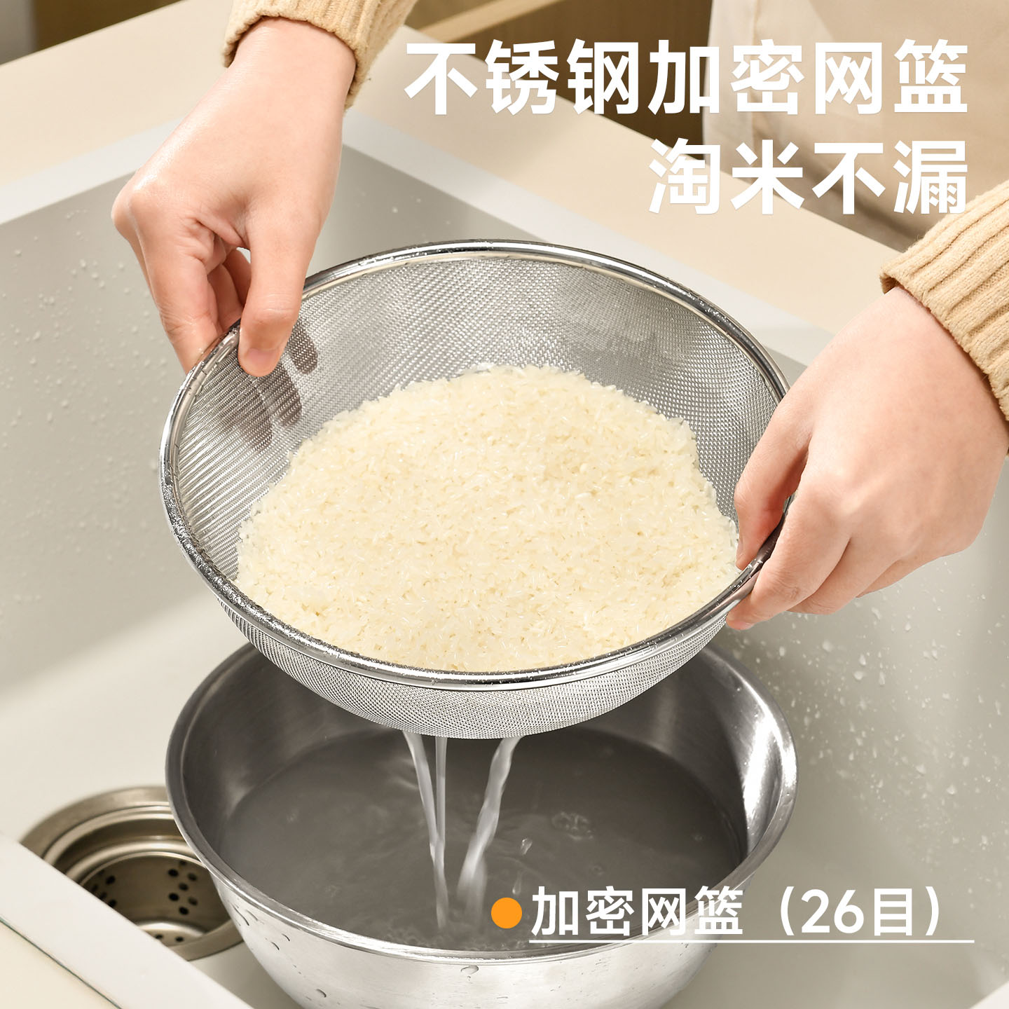 不锈钢加密网篮 304不锈钢厨房备菜沥水篮洗菜沥水盆五件套滤网沙拉碗