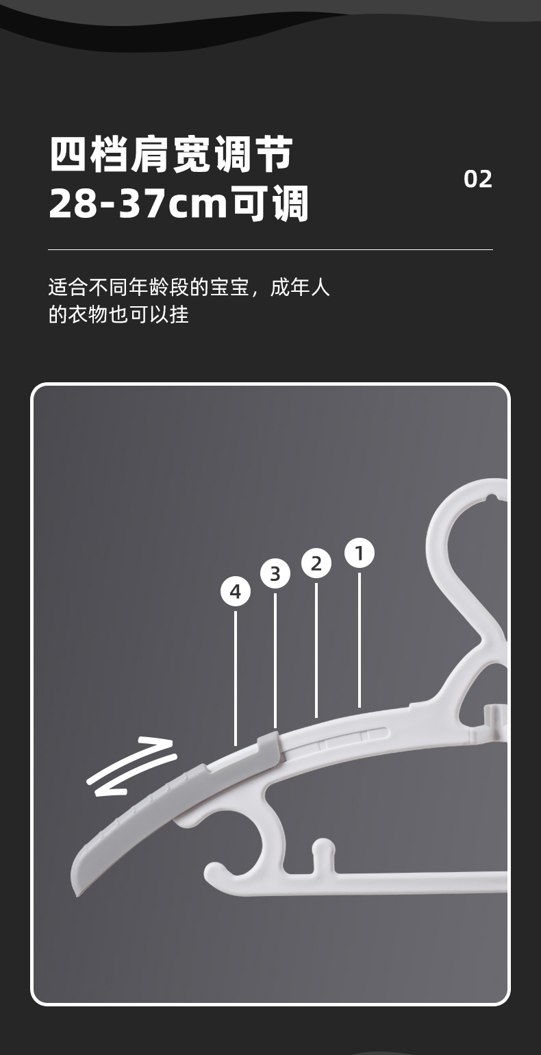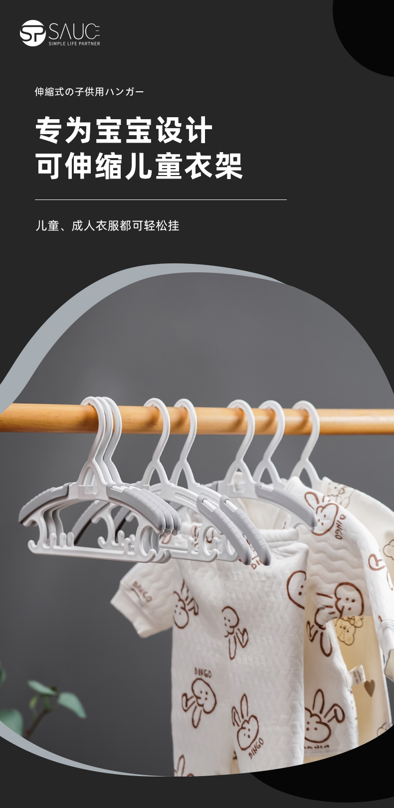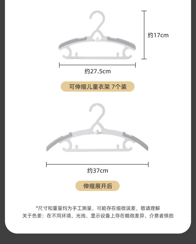 可伸缩儿童衣架(7个装) 儿童衣架婴儿宝宝新生儿小孩专用小衣架家用晾挂伸缩挂衣撑