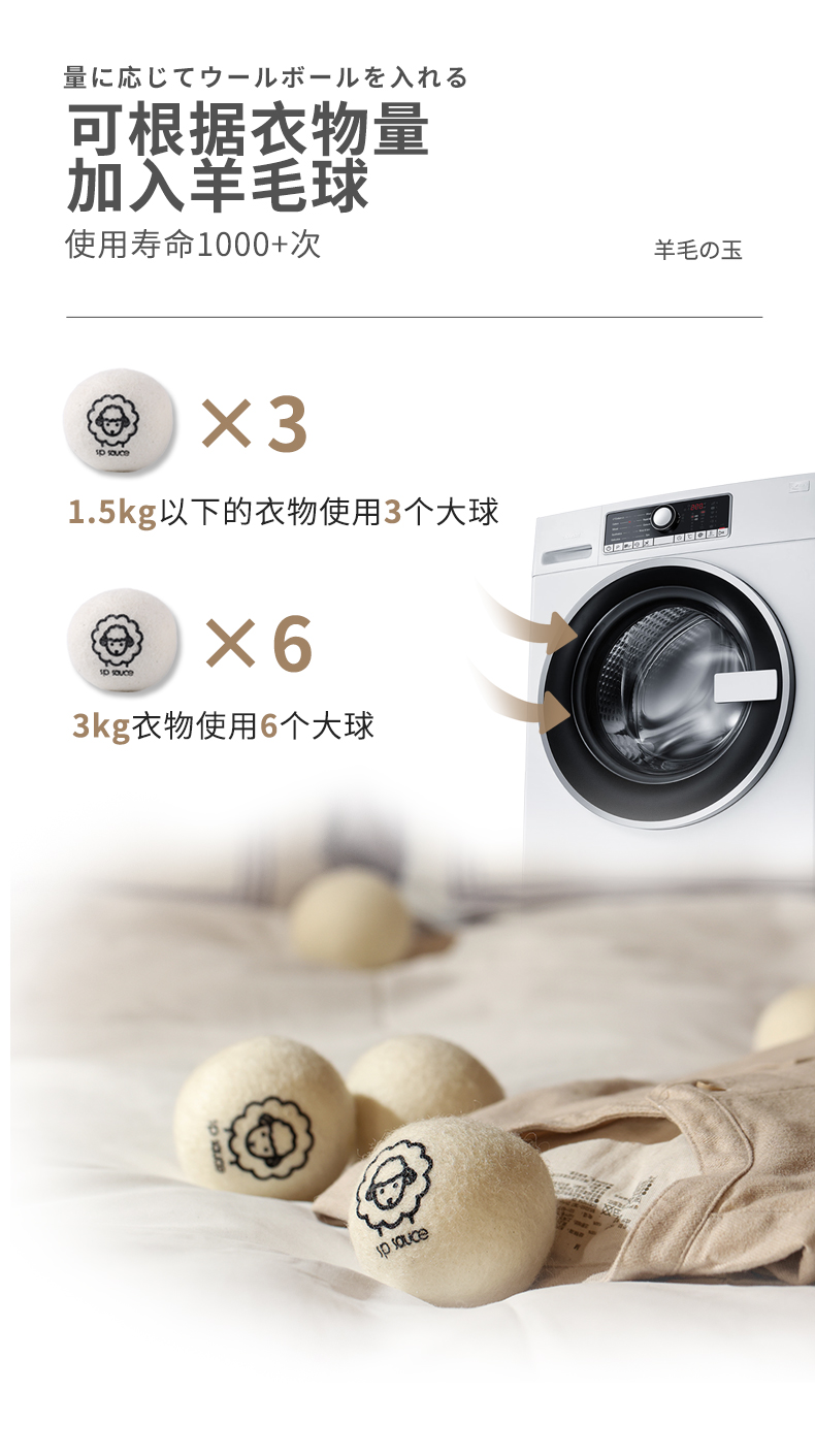 烘衣球 3枚入 防缠绕烘干羊毛球家用干衣洗衣烘干机防缠绕适烘干球