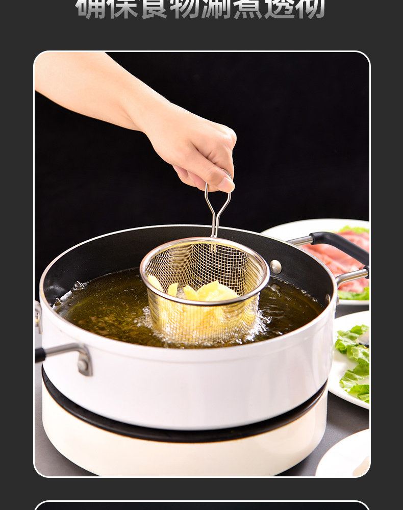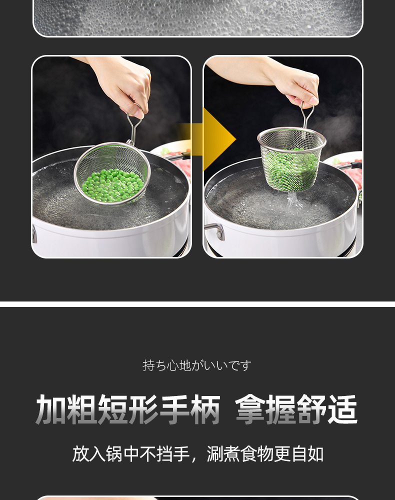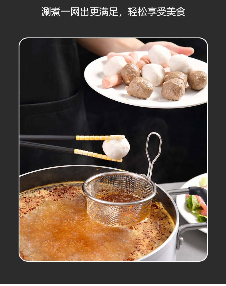 短柄火锅漏勺(小号) 304火锅专用漏勺细网家用捞面勺漏网油炸网篮漏勺子网漏密漏细密