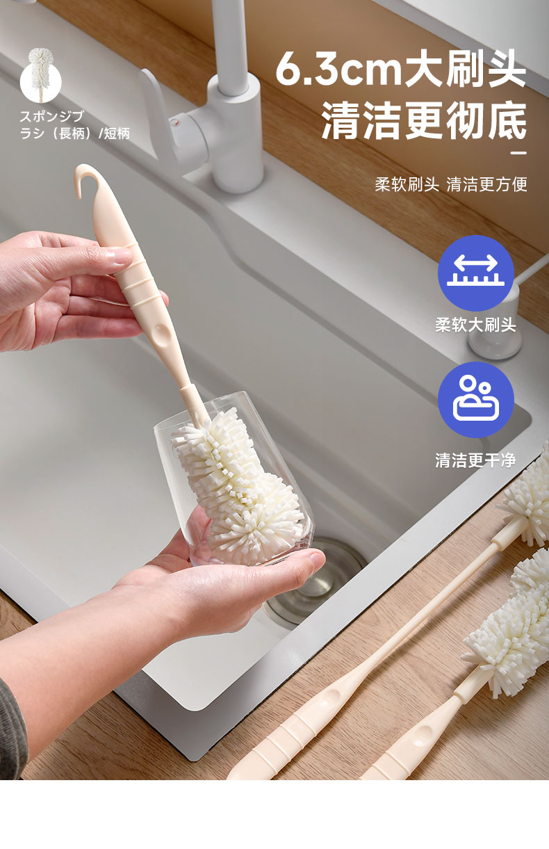 海绵杯刷(长柄) 洗杯子神器刷水杯清洁长柄洗奶瓶刷无死角去茶渍海绵小刷子