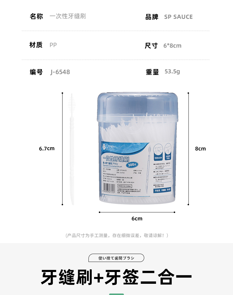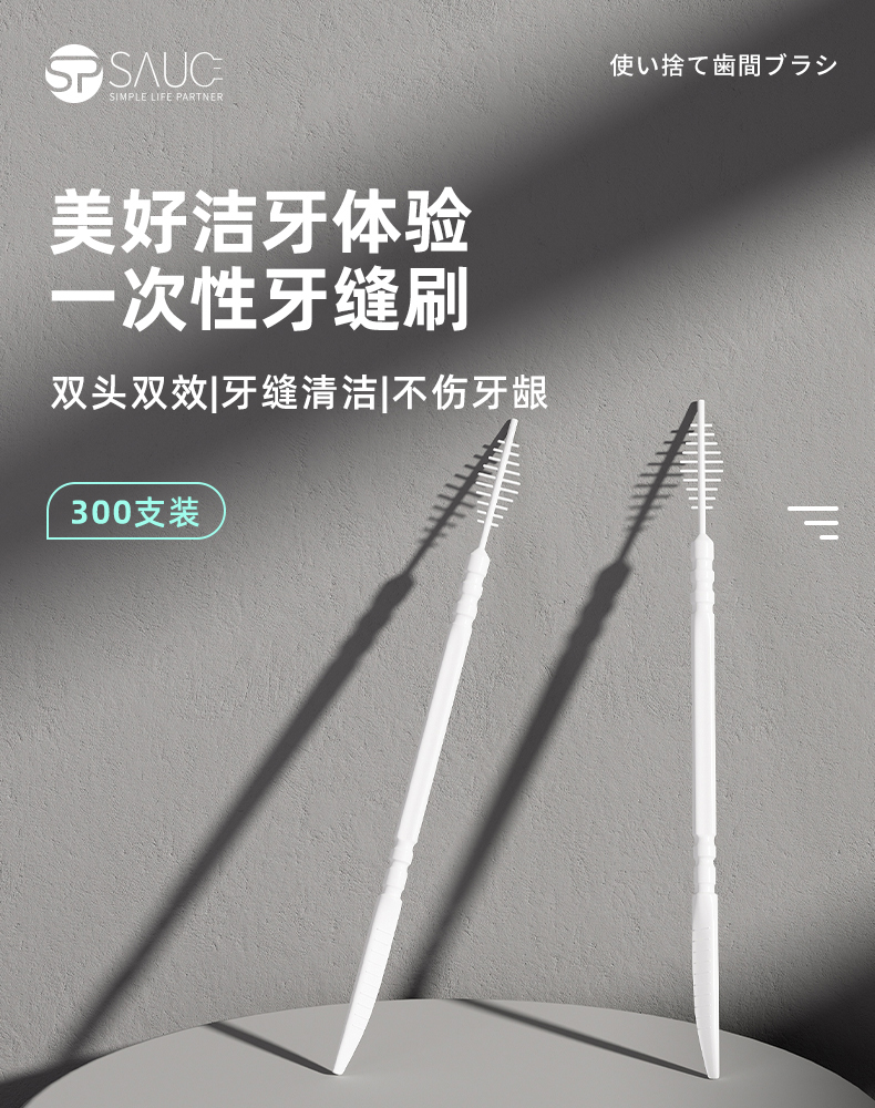 一次性牙缝刷(300支装) 一次性牙缝刷鱼骨便携式家用剔牙签牙间刷两用牙线牙签刷