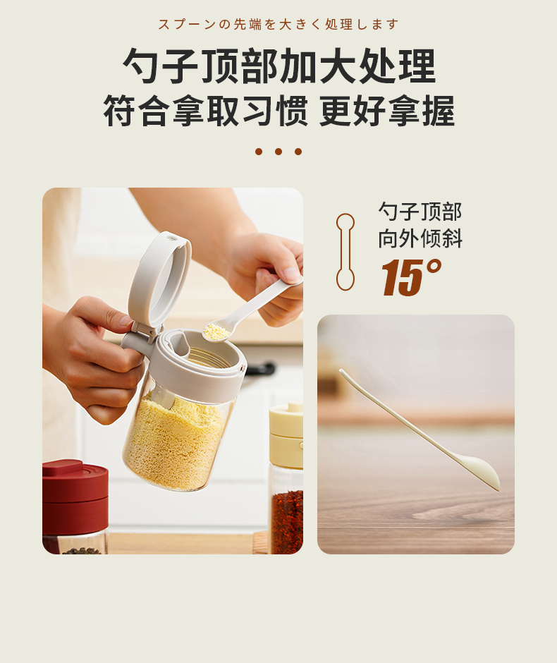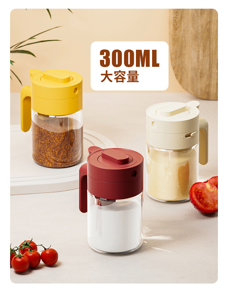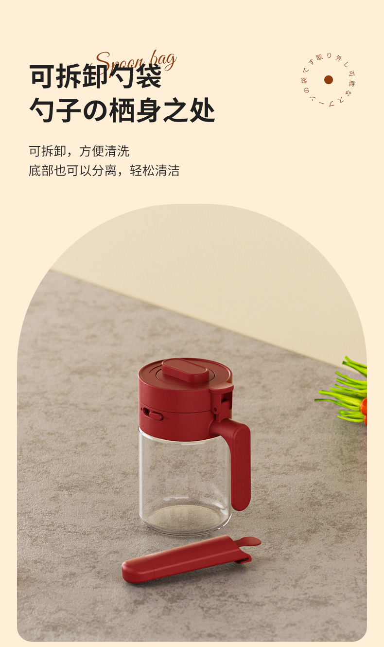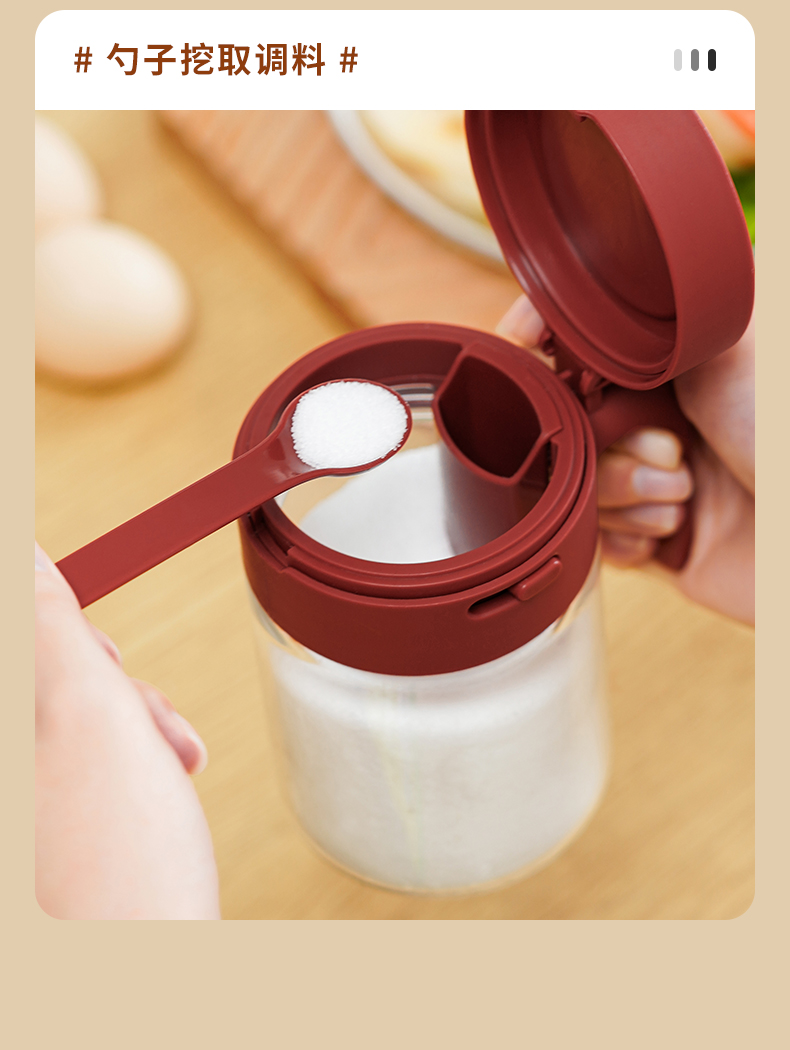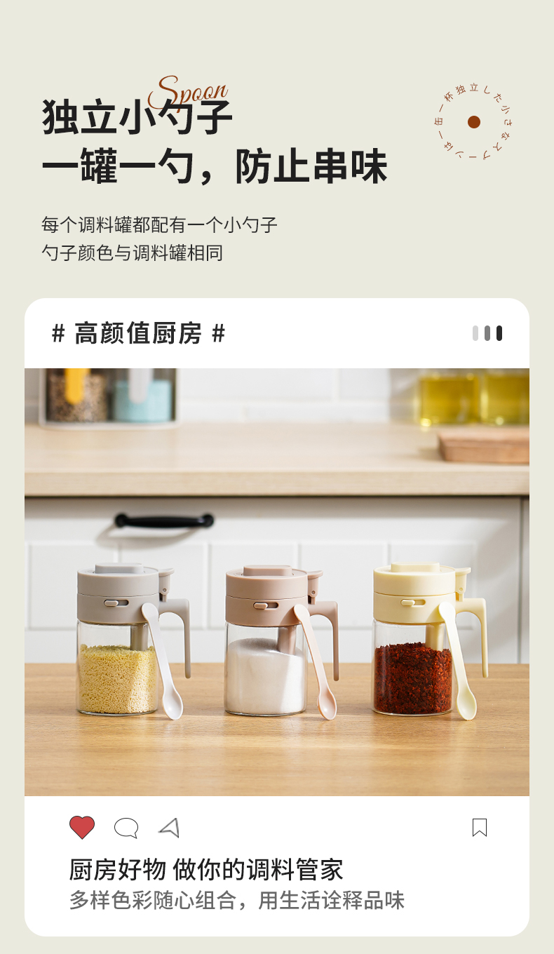 多功能调料罐 料勺分离调料盒厨房家用调味料罐盐罐佐料收纳盒二合一设计倒挖两用厨房神器