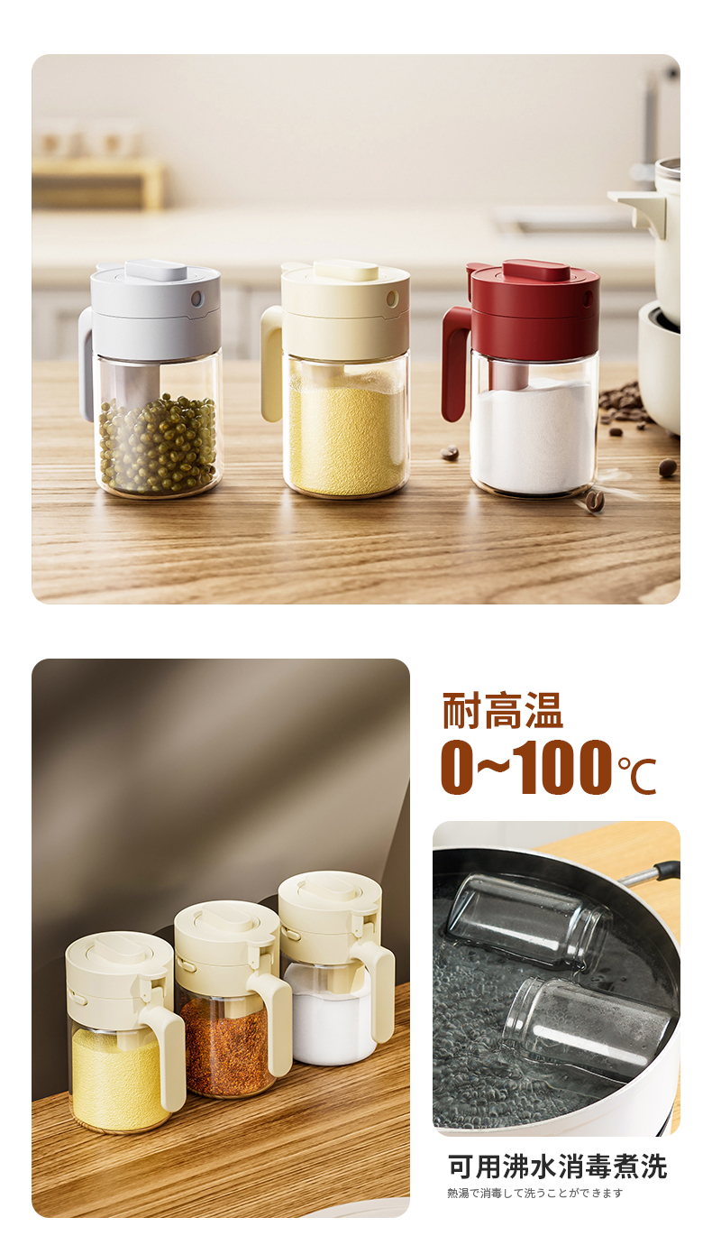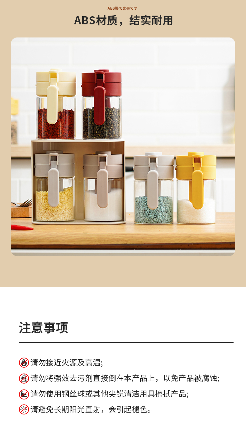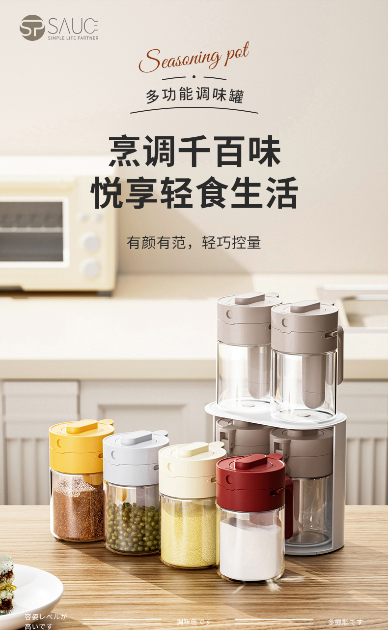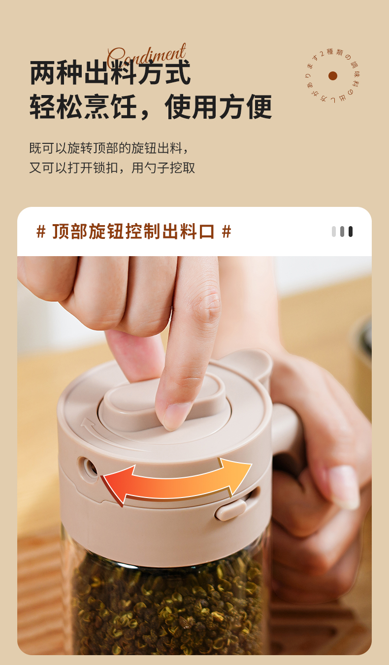 多功能调料罐 料勺分离调料盒厨房家用调味料罐盐罐佐料收纳盒二合一设计倒挖两用厨房神器