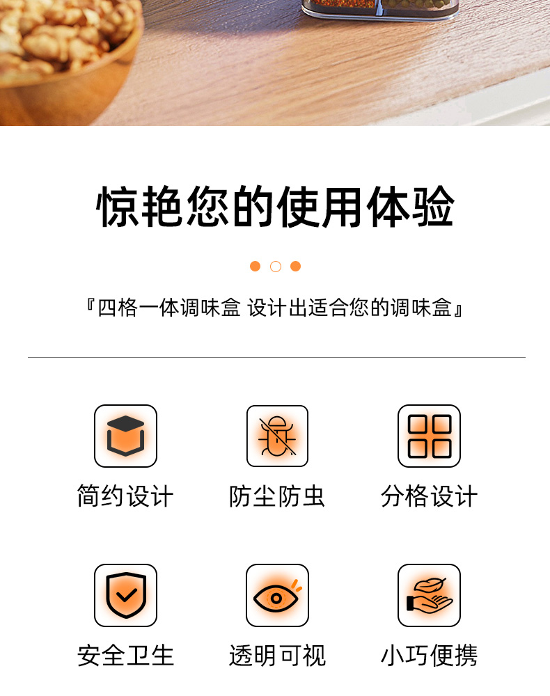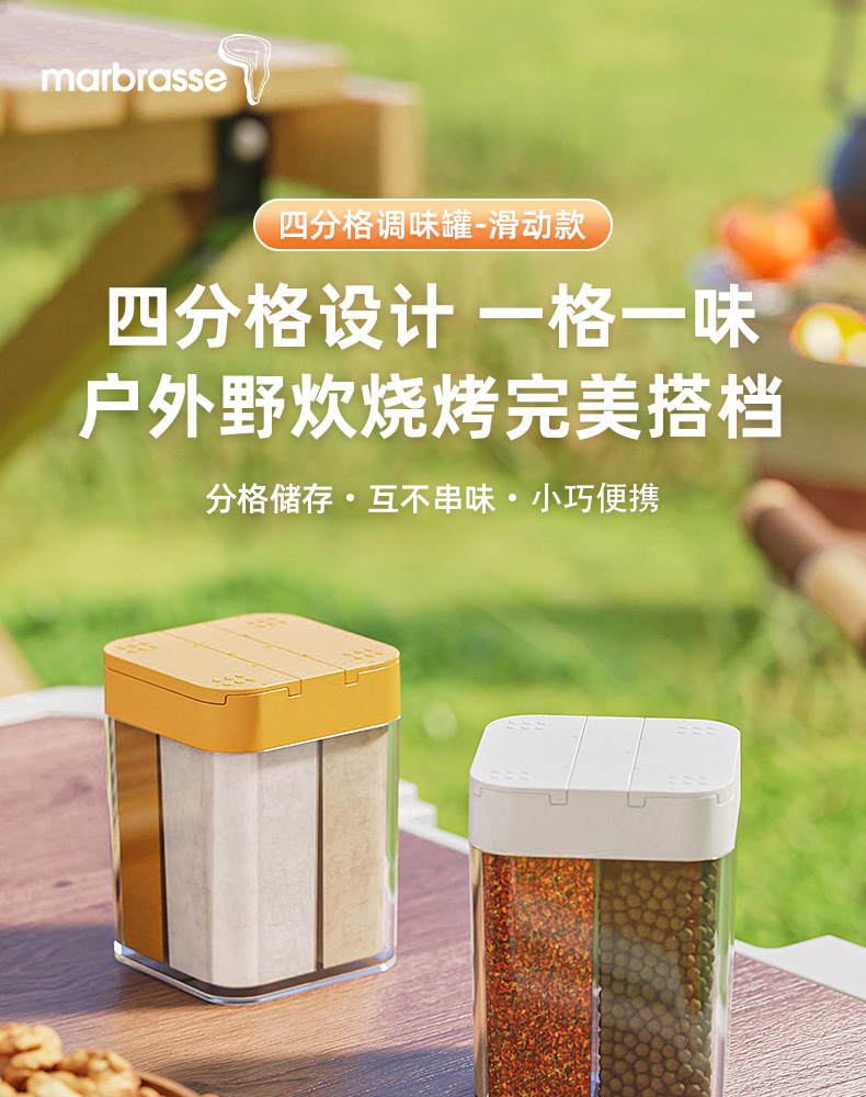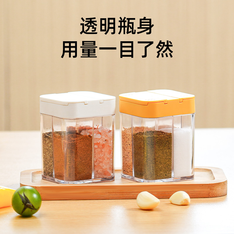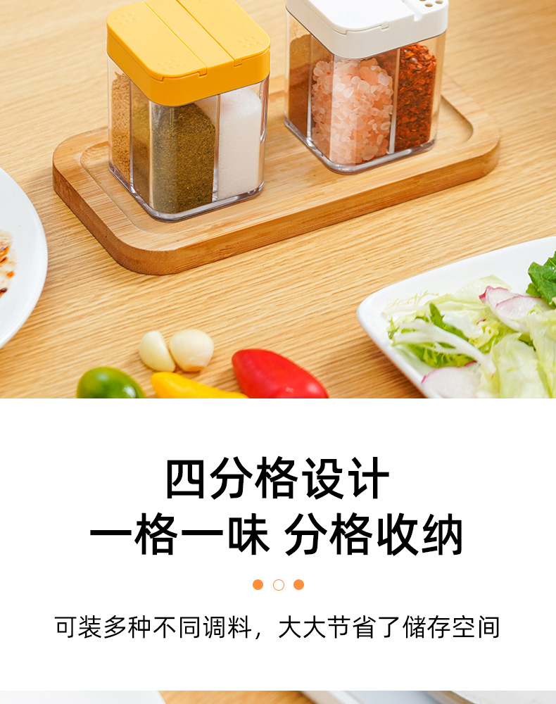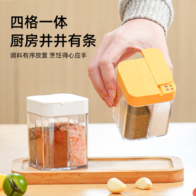四分格调味罐(滑动款) 调料盒厨房调料瓶调味罐四分格调料罐防潮盐罐盖子可滑动