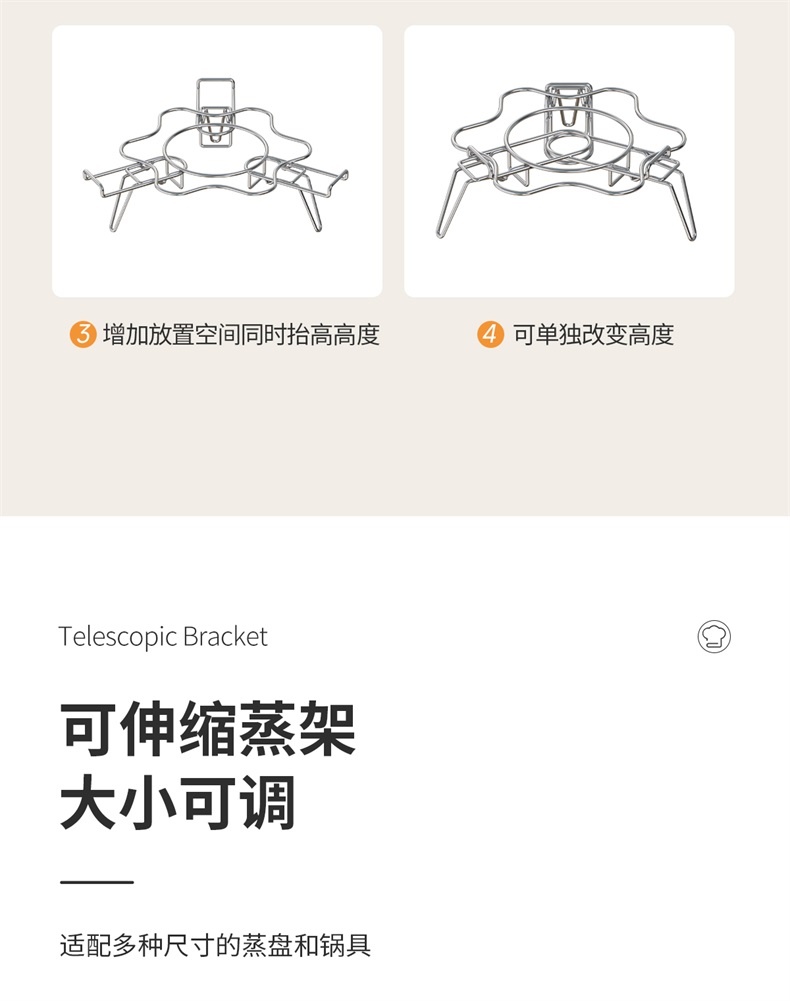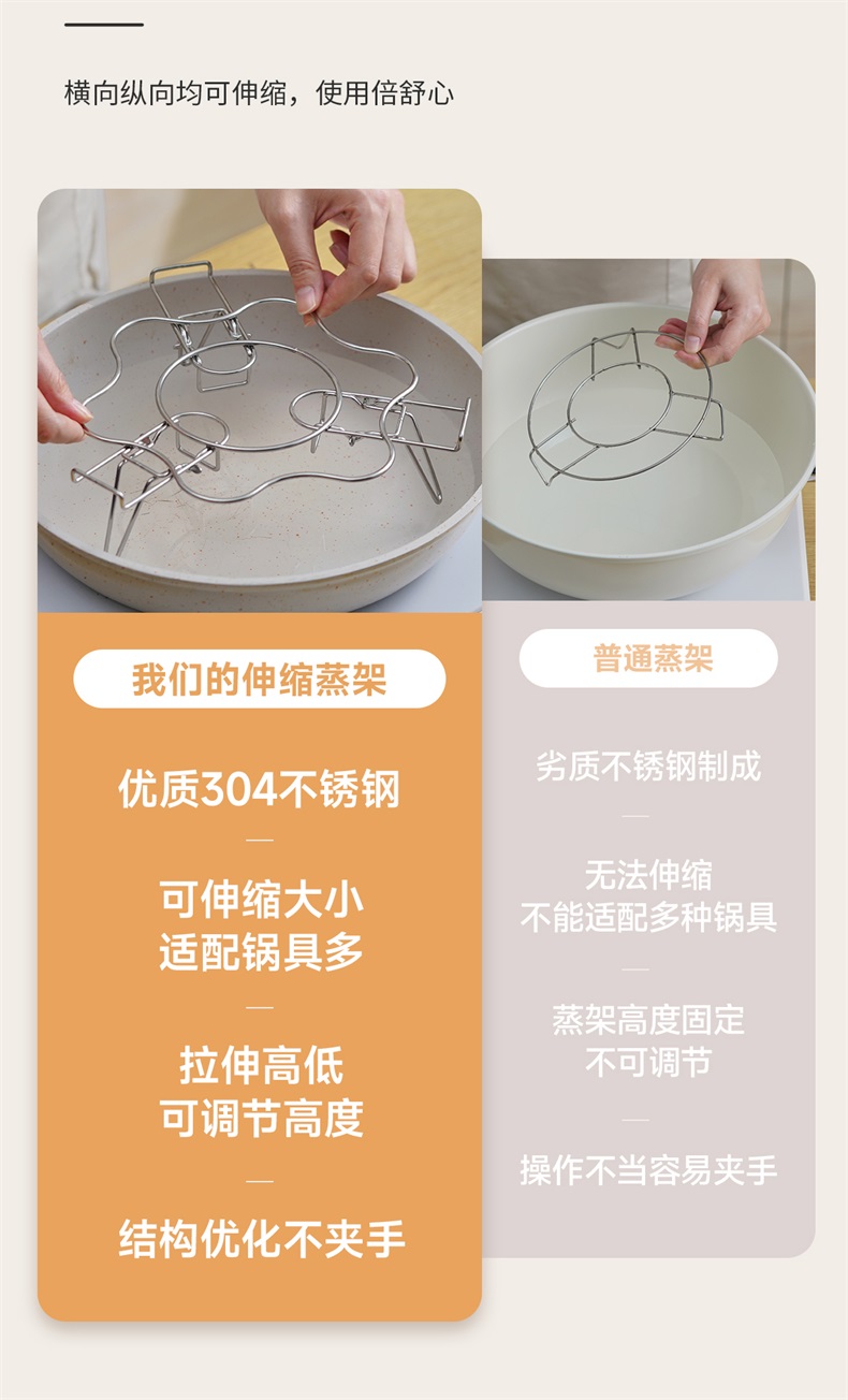 不锈钢伸缩蒸架 304不锈钢可伸缩蒸架折叠多功能隔水高脚蒸笼支架加高蒸菜锅架子