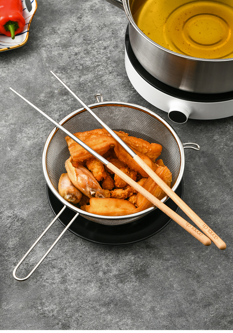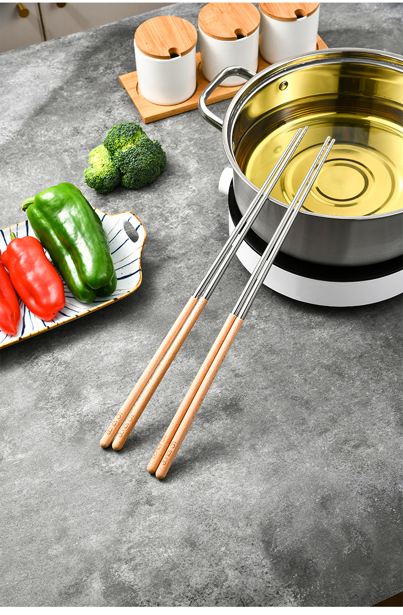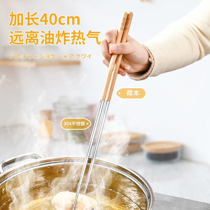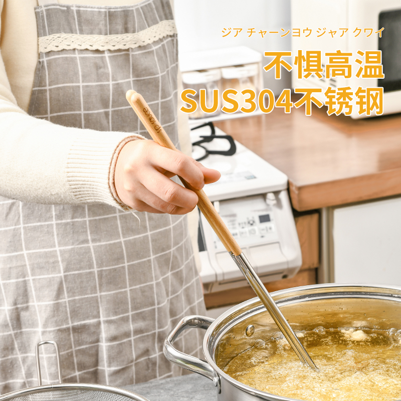 厨房用油炸筷 304不锈钢荷木木加长款火锅油炸筷子家用捞面厨房油条筷子