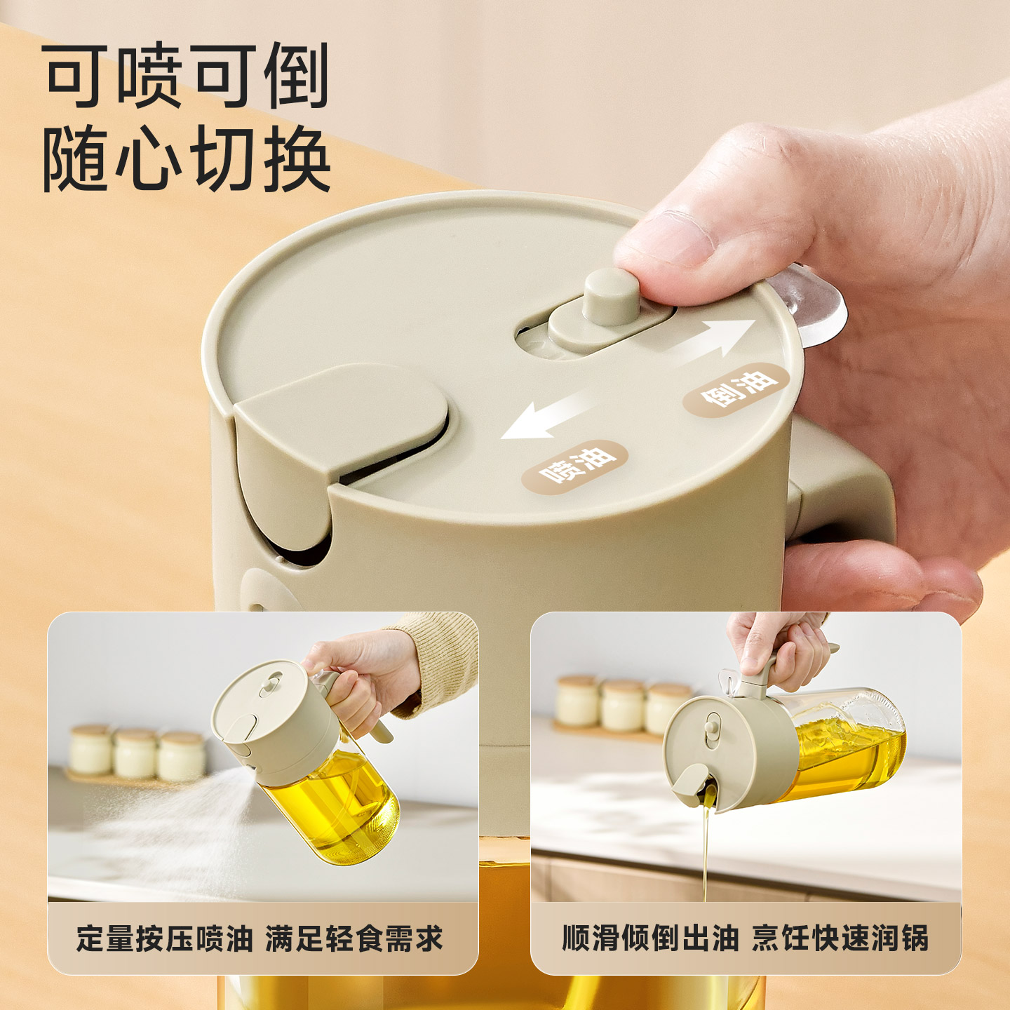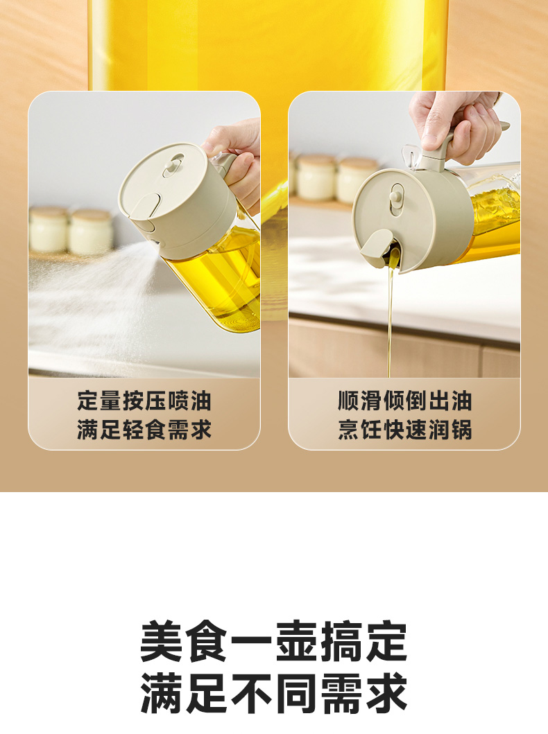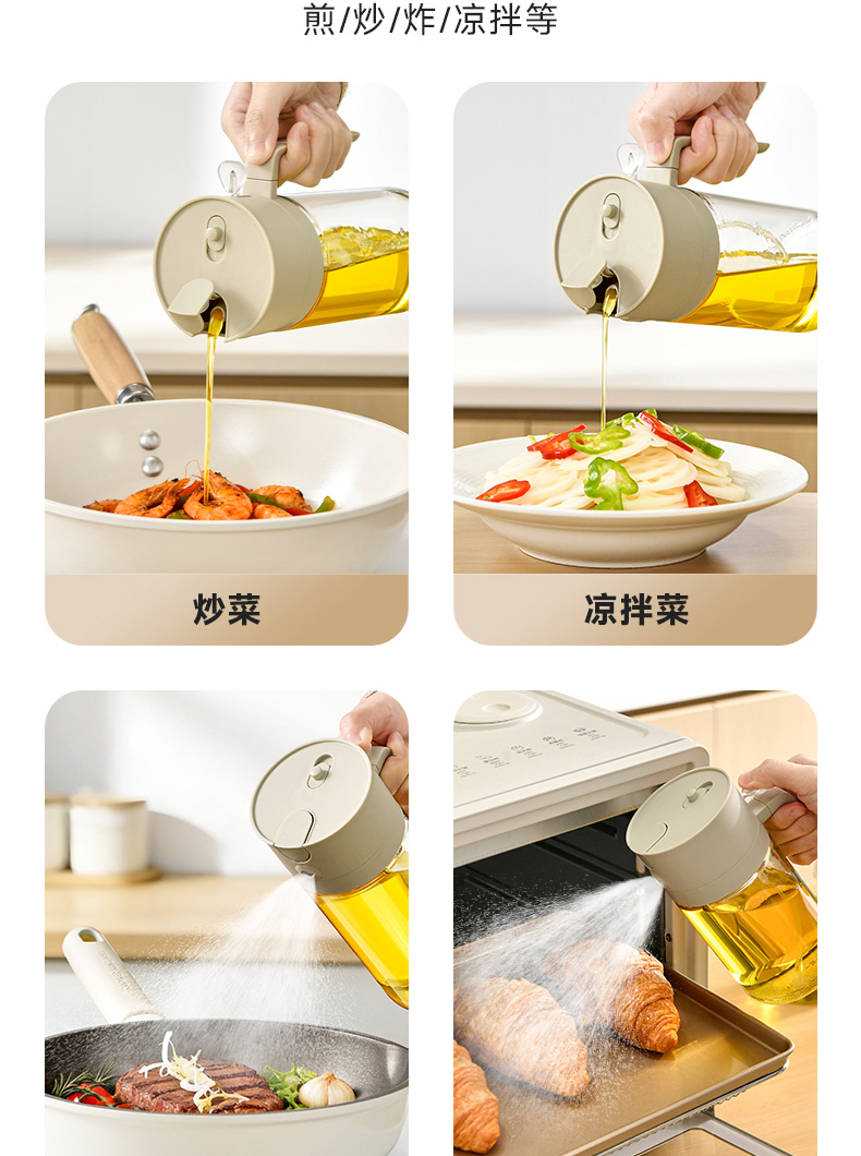 喷倒一体油壶500ml 喷倒两用玻璃油壶食品级家用厨房雾化喷油罐大容量喷油壶