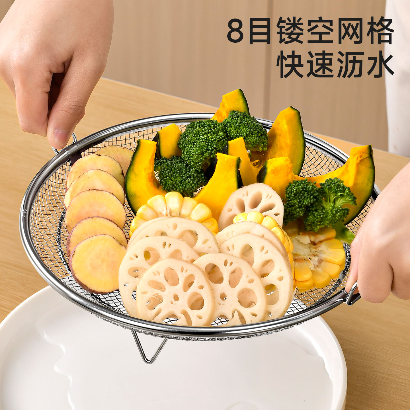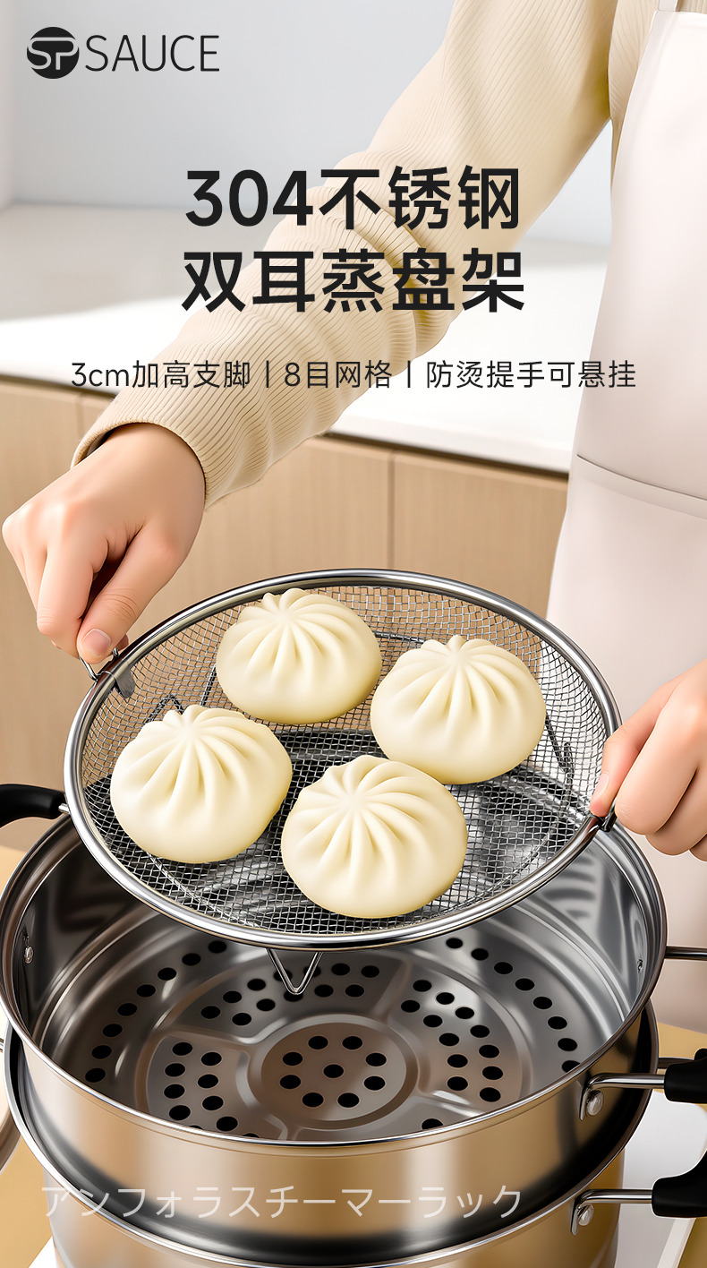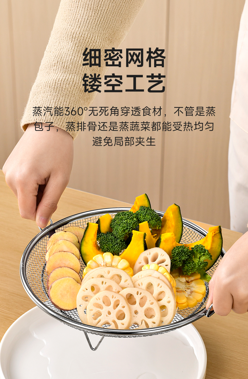 双耳蒸盘手柄 304不锈钢蒸屉热馒头不湿神器蒸格篦子热馍馍溜蒸盘蒸架多功能加高设计