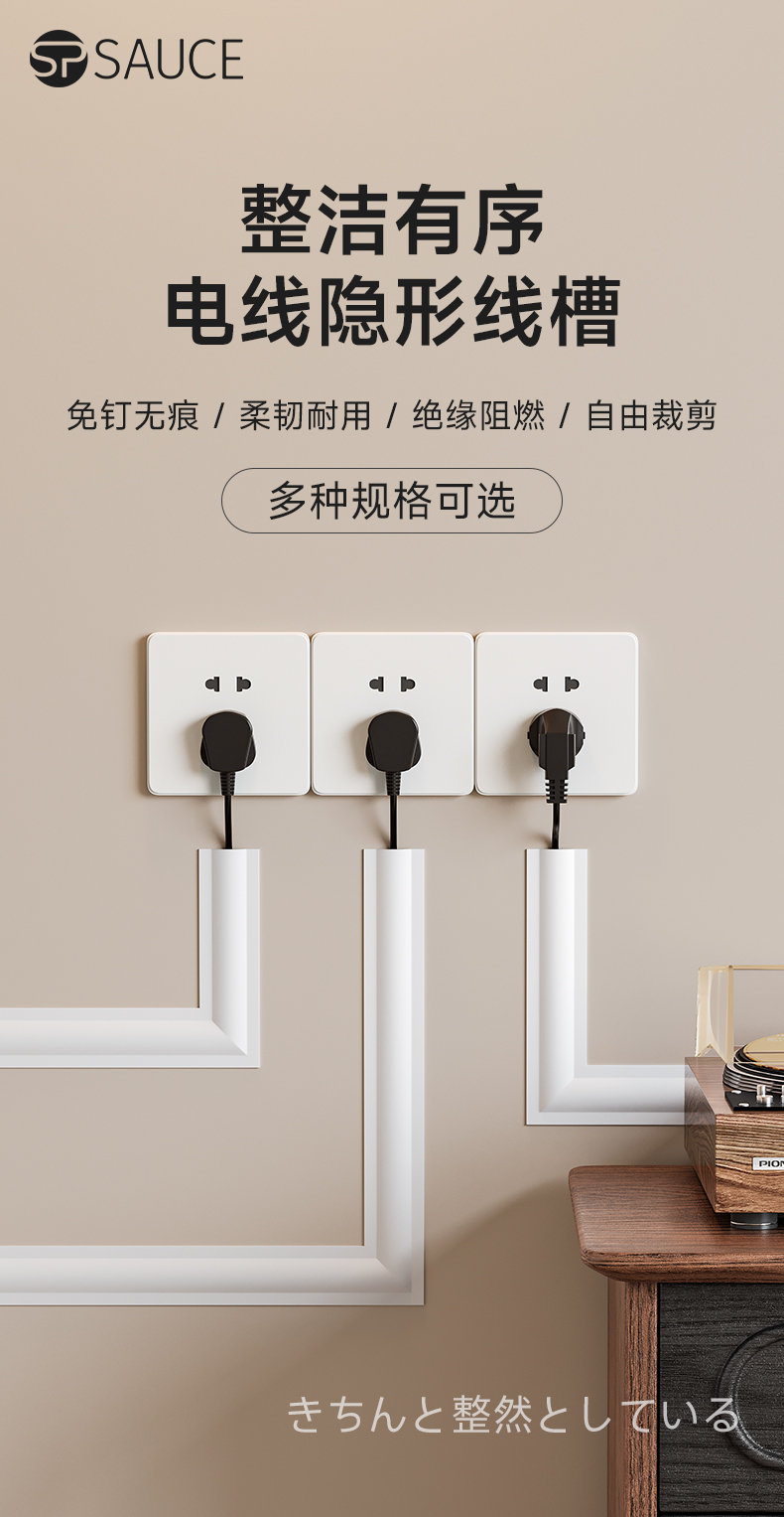 电线隐形线槽 3.8cm*1m 压线条软走线神器电线收纳地面理线插座固定墙壁藏线墙角网线遮挡