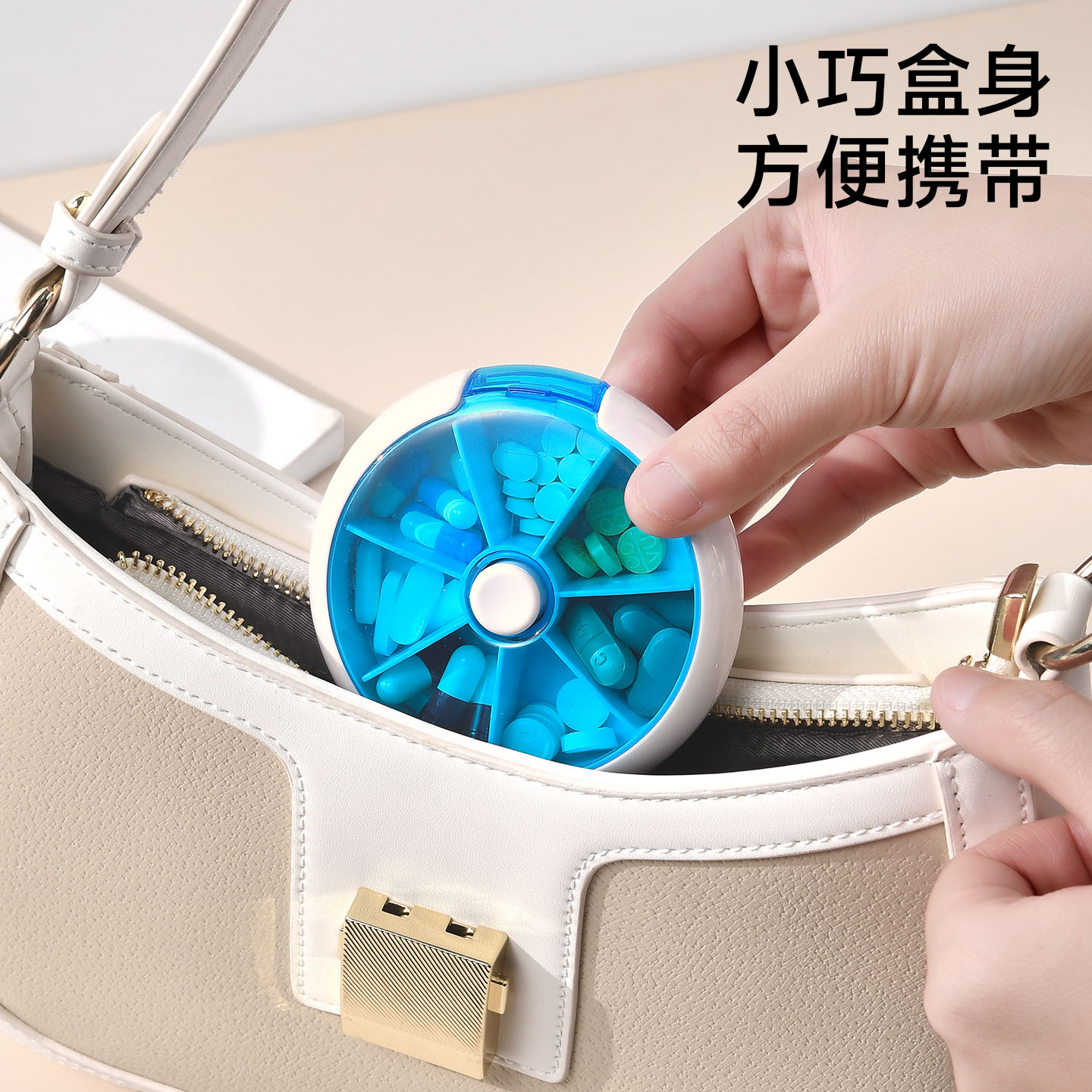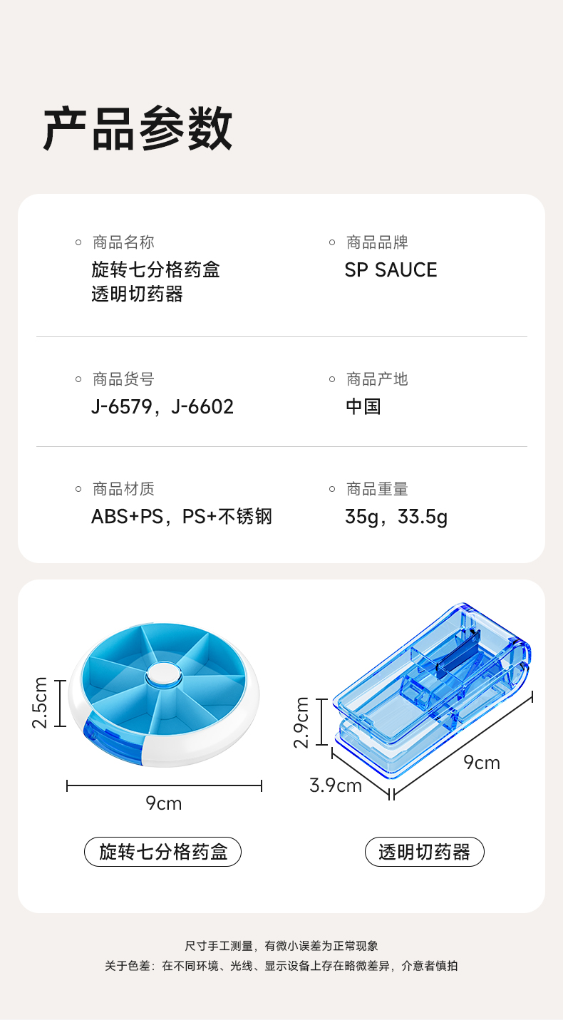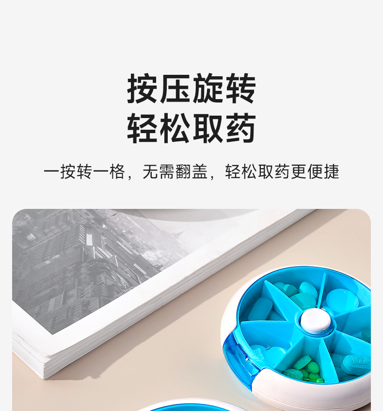 旋转七分格药盒 旋转小药盒便携式一周分装随身旅行分药盒子切药器装药片品