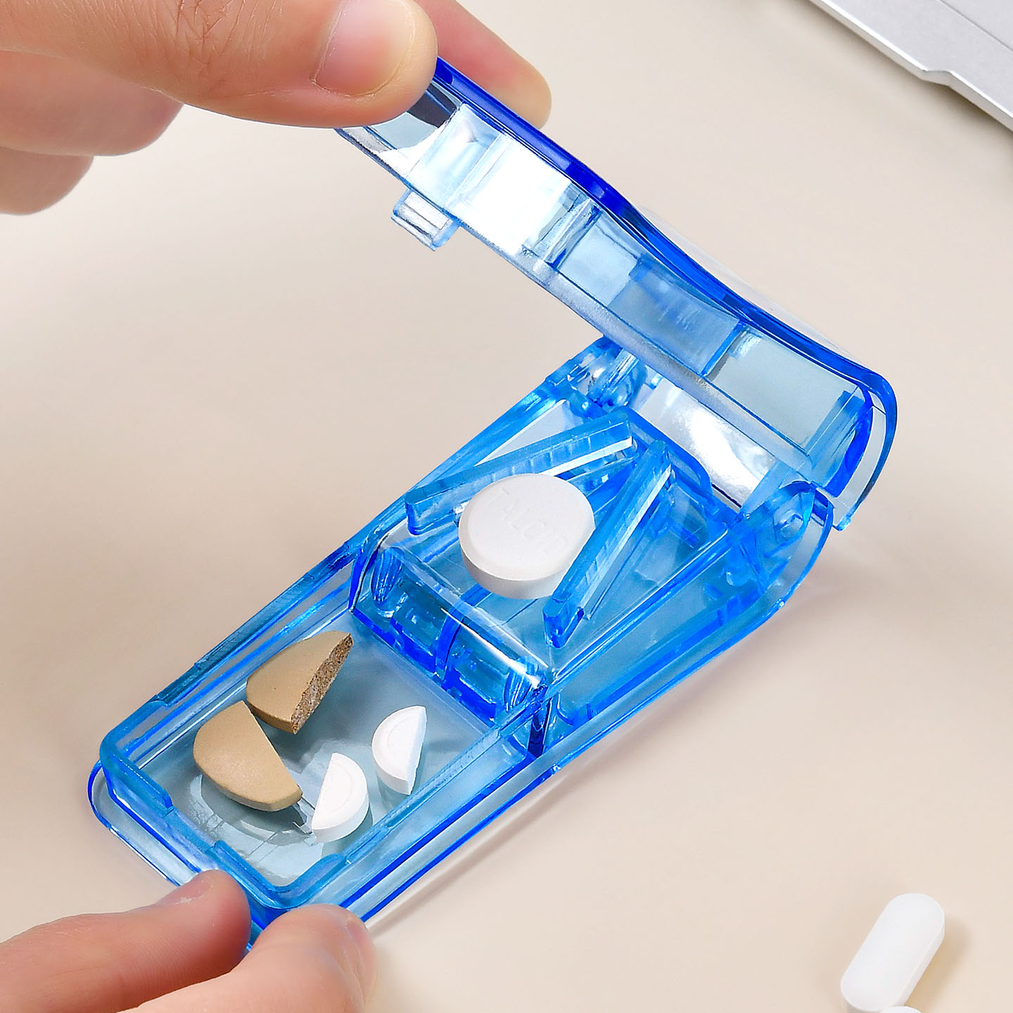 透明切药器 切药器可固定药片分割器透明切药盒便携迷你塑料分药盒