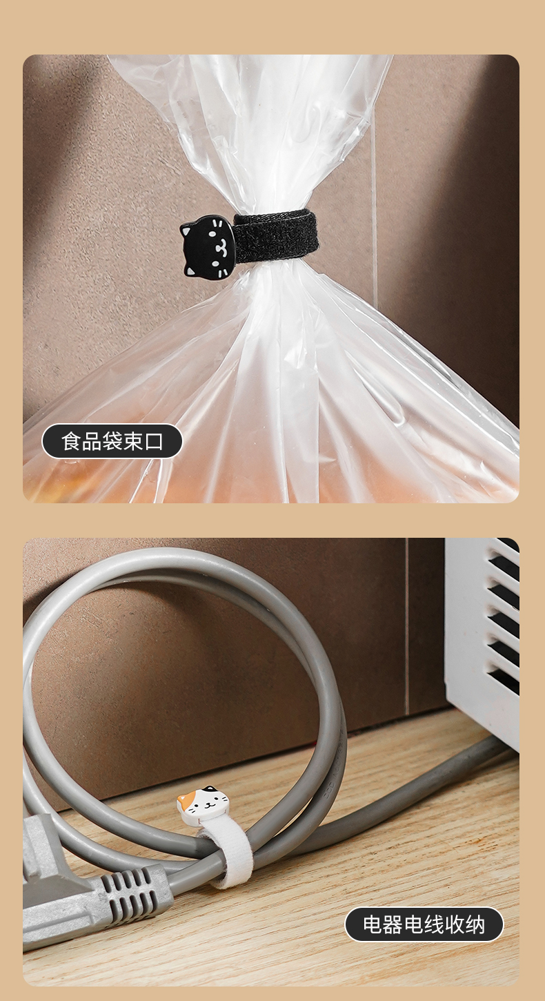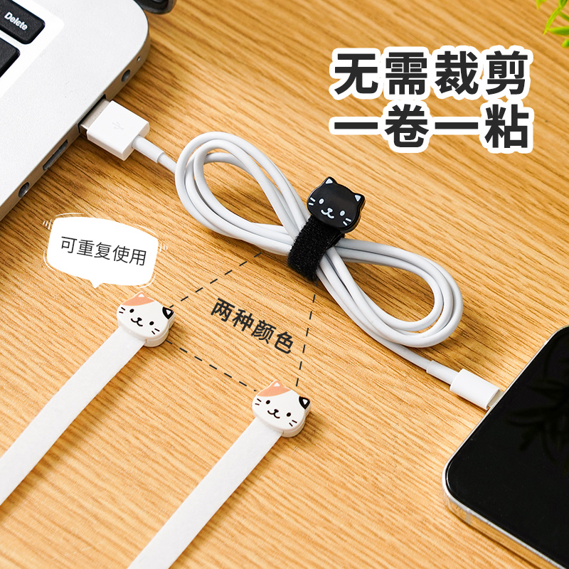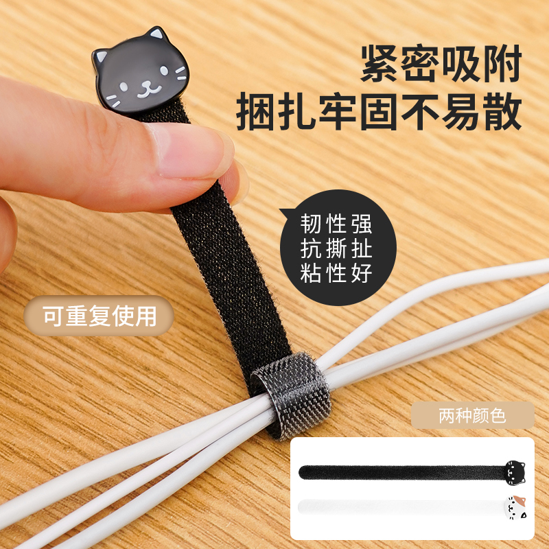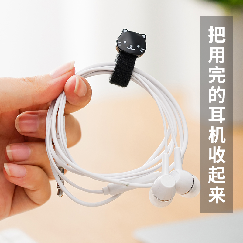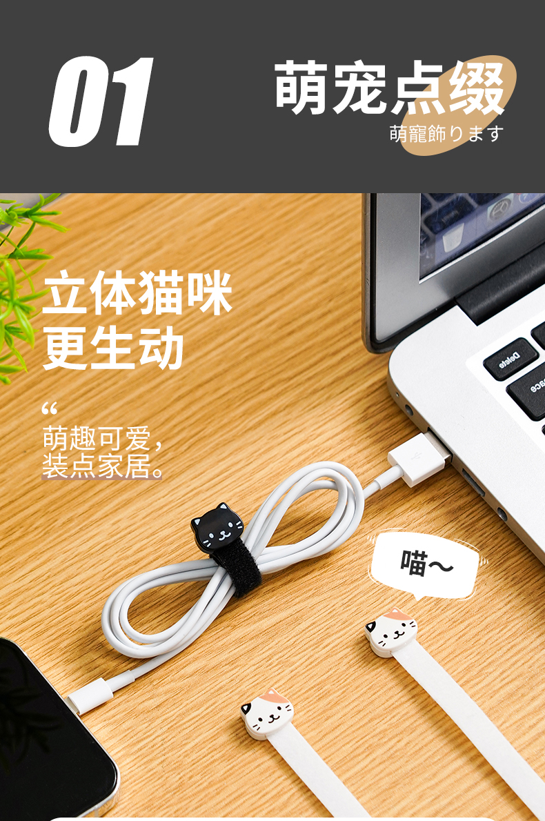 立体猫咪理线器(四枚入) 数据线收纳绑带魔术贴扎带理线器电脑束线带整理电线走线固定器