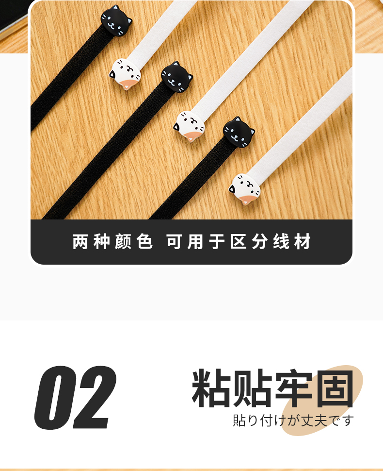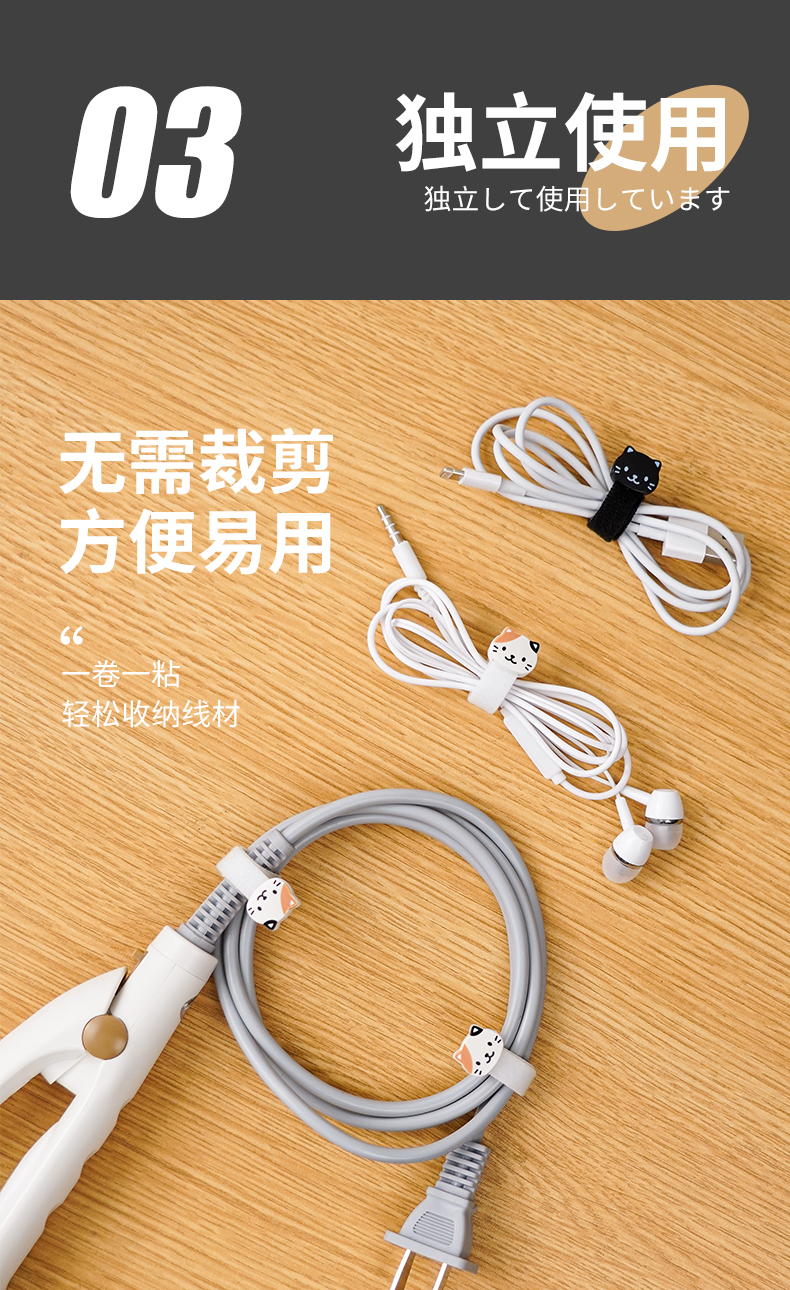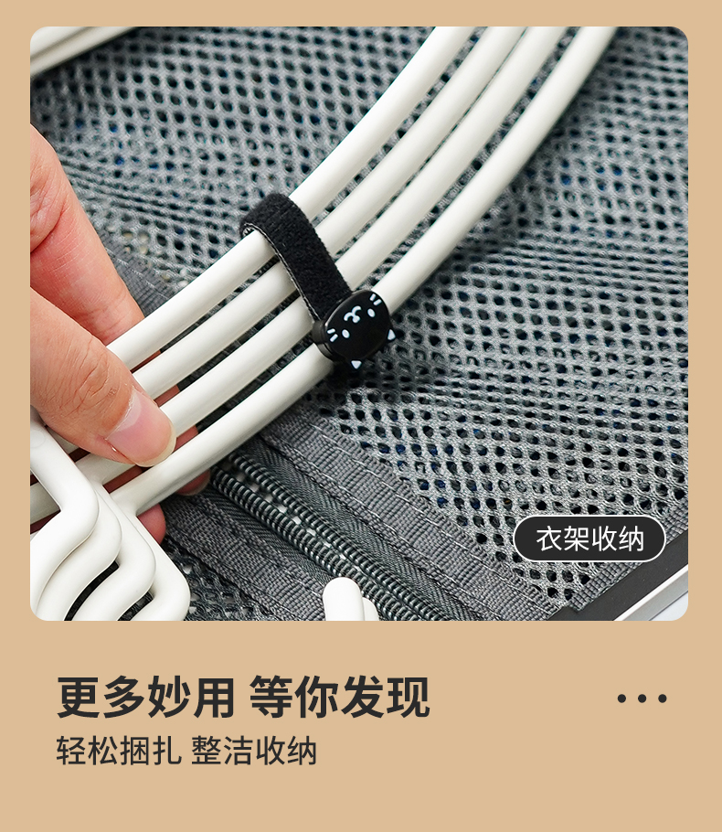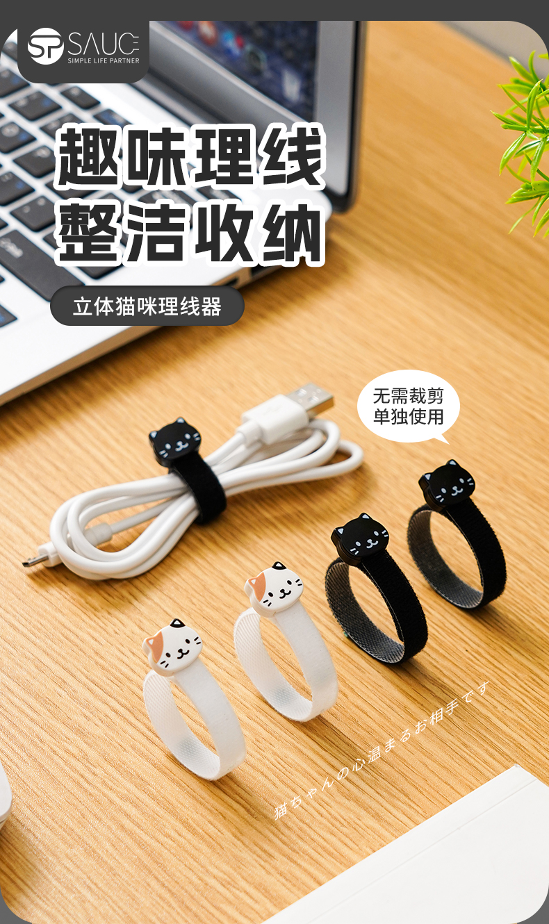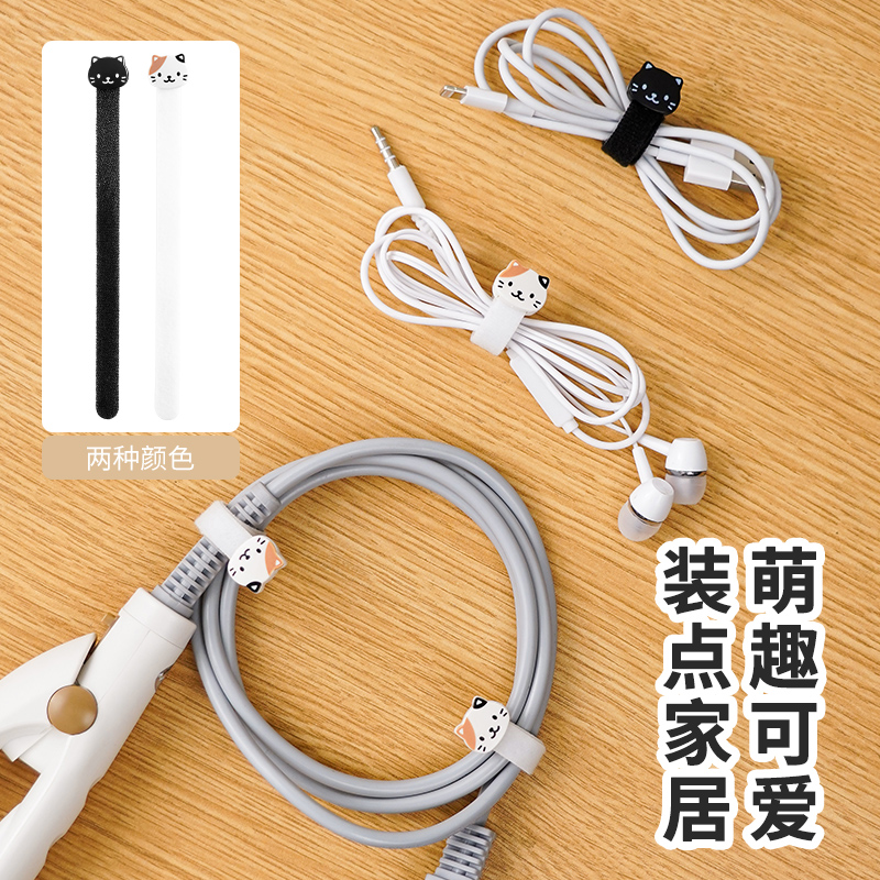 立体猫咪理线器(四枚入) 数据线收纳绑带魔术贴扎带理线器电脑束线带整理电线走线固定器