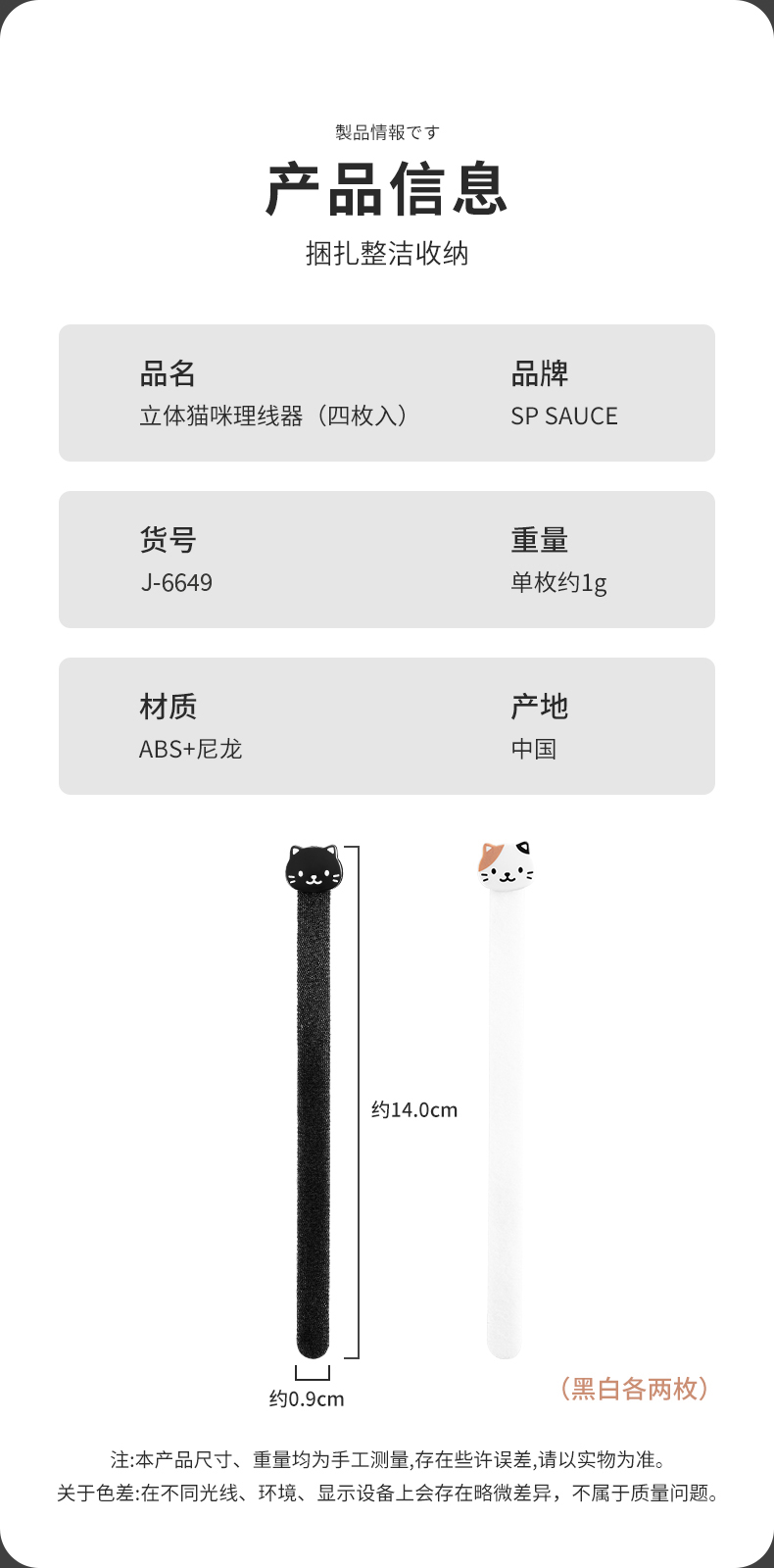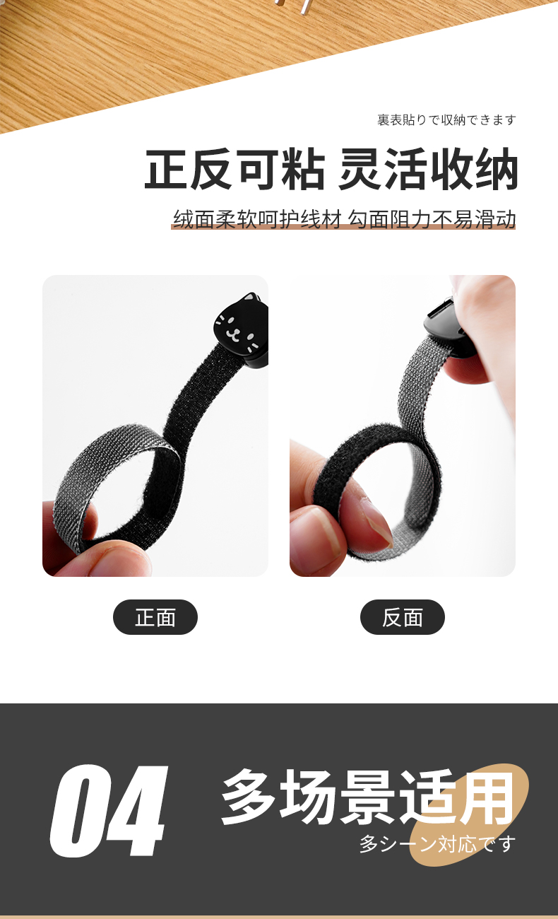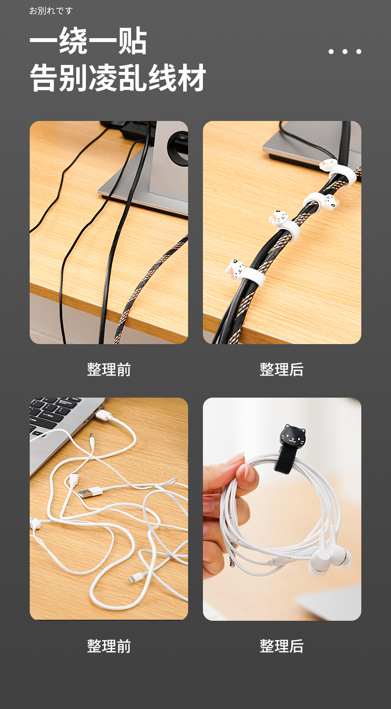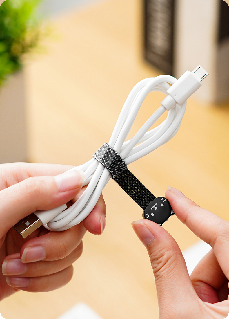 立体猫咪理线器(四枚入) 数据线收纳绑带魔术贴扎带理线器电脑束线带整理电线走线固定器