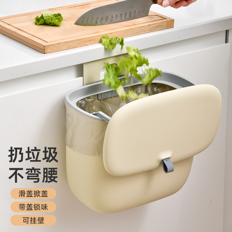 简约壁挂垃圾桶8L 厨房垃圾桶壁挂家用带盖厕所卫生间客厅纸篓厨余挂式收纳桶