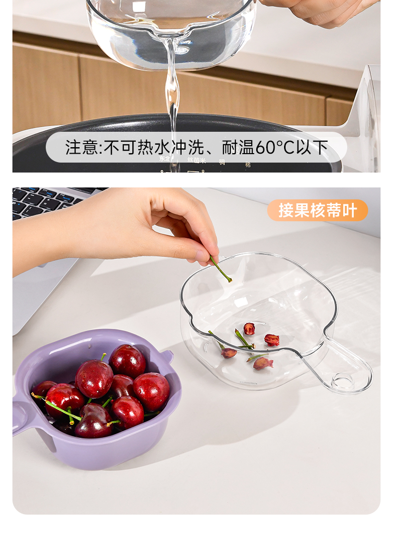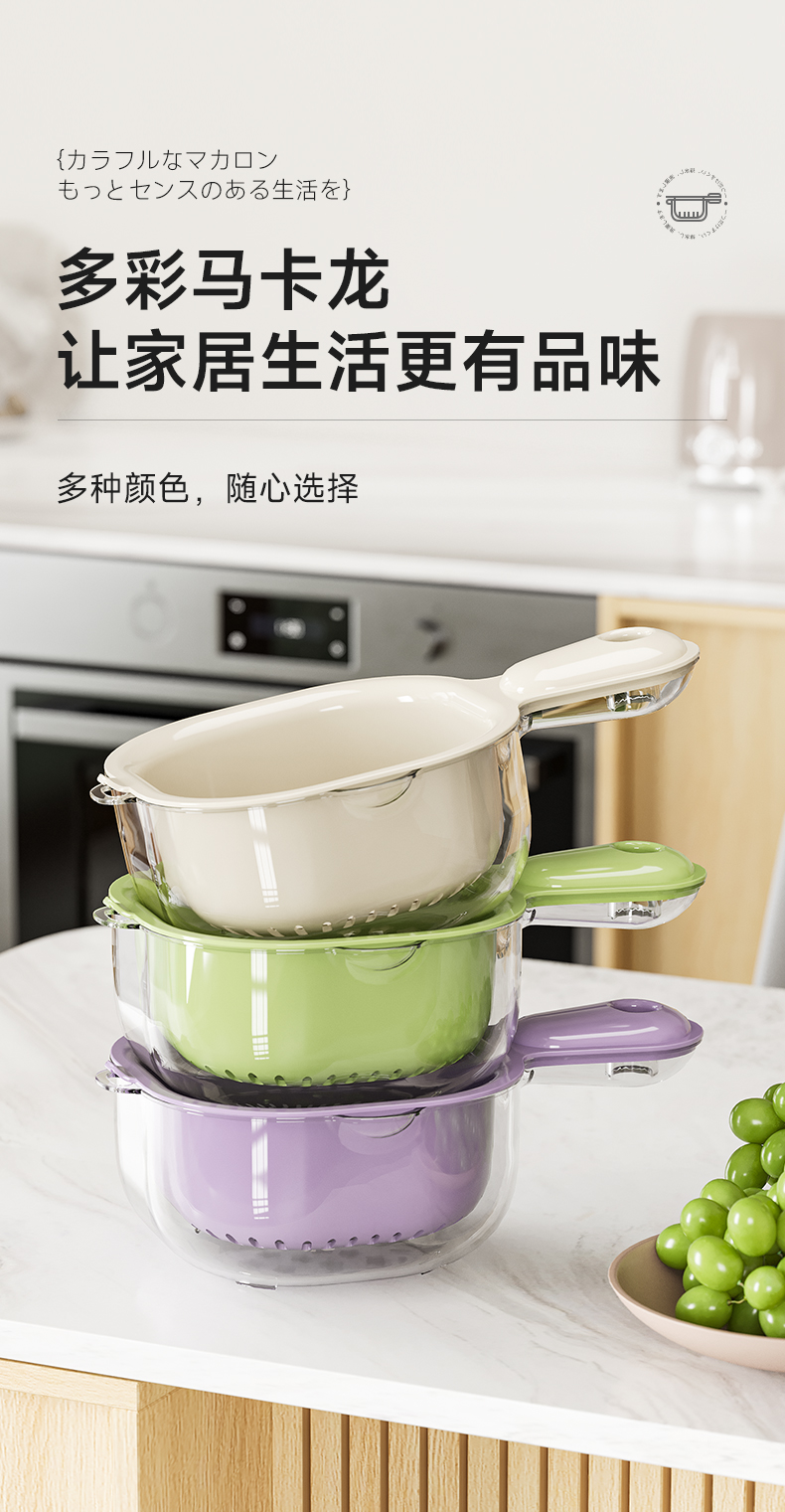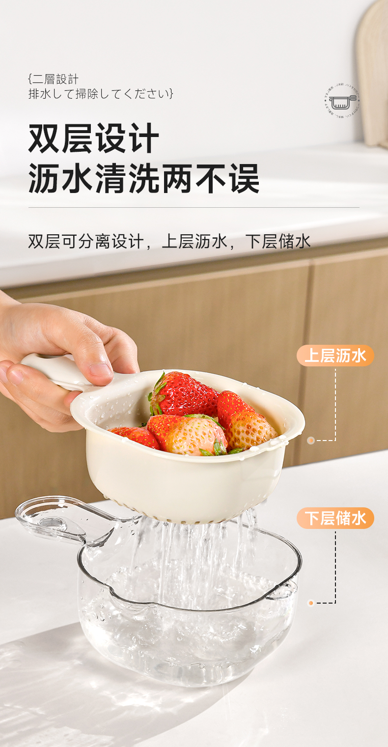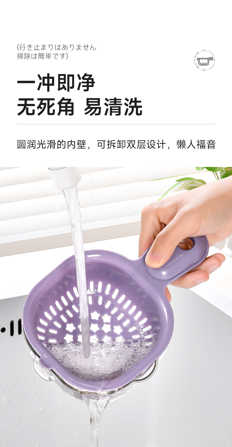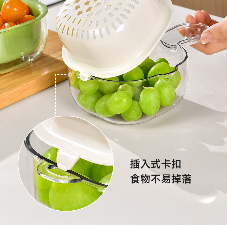 手柄沥水篮(软胶表情贴另拍) 双层洗水果神器沥水篮厨房家用新款客厅淋水篮精致小果盘