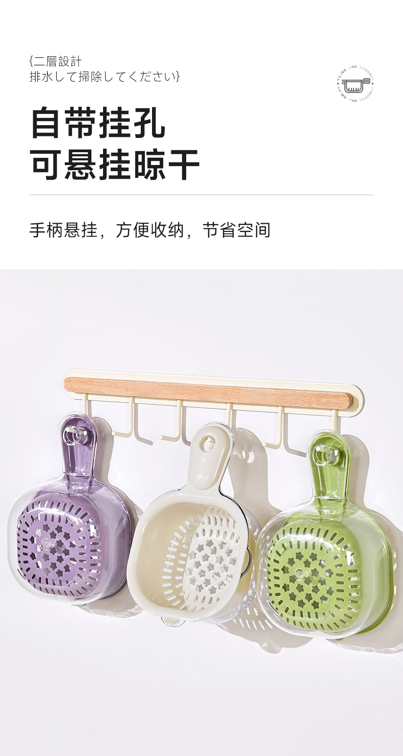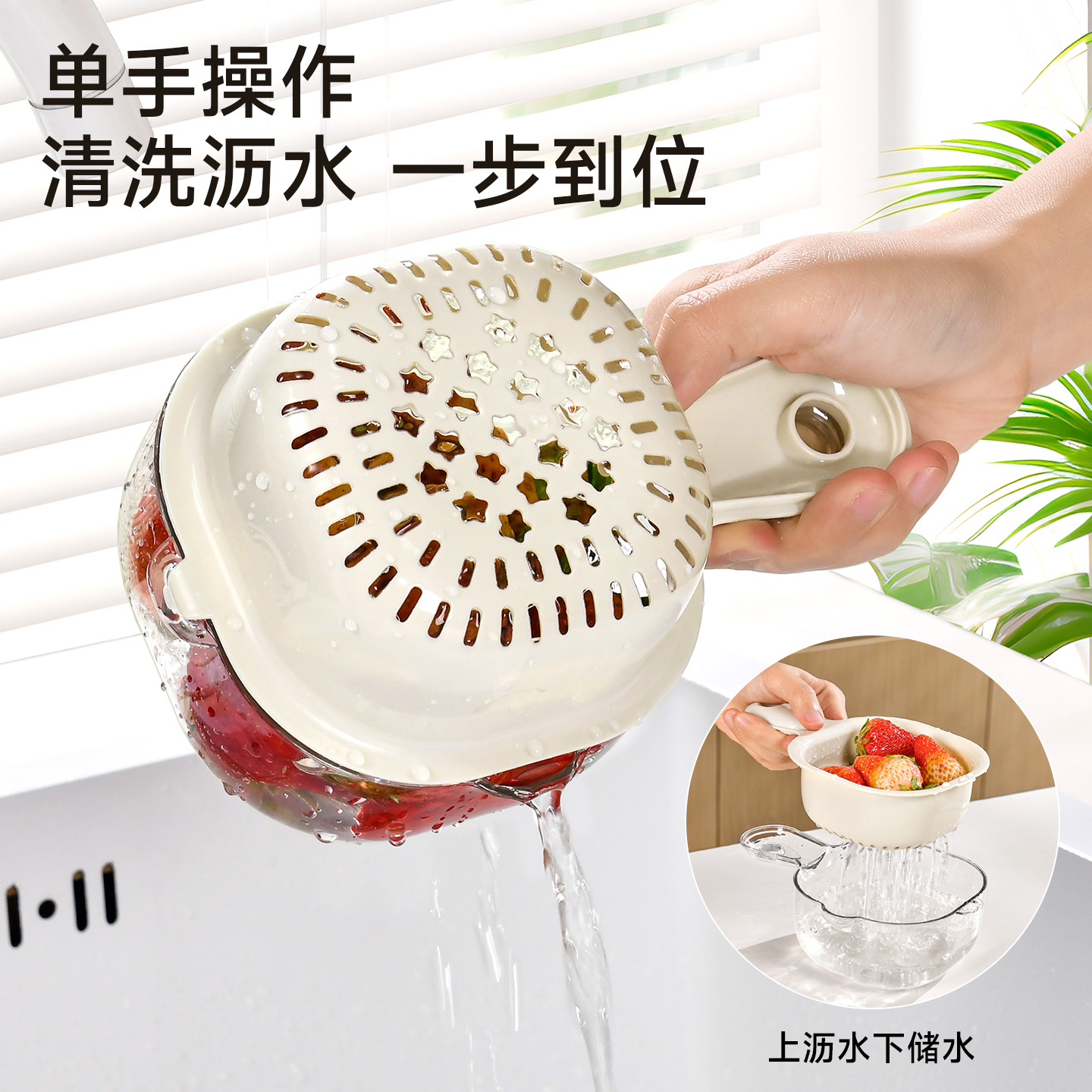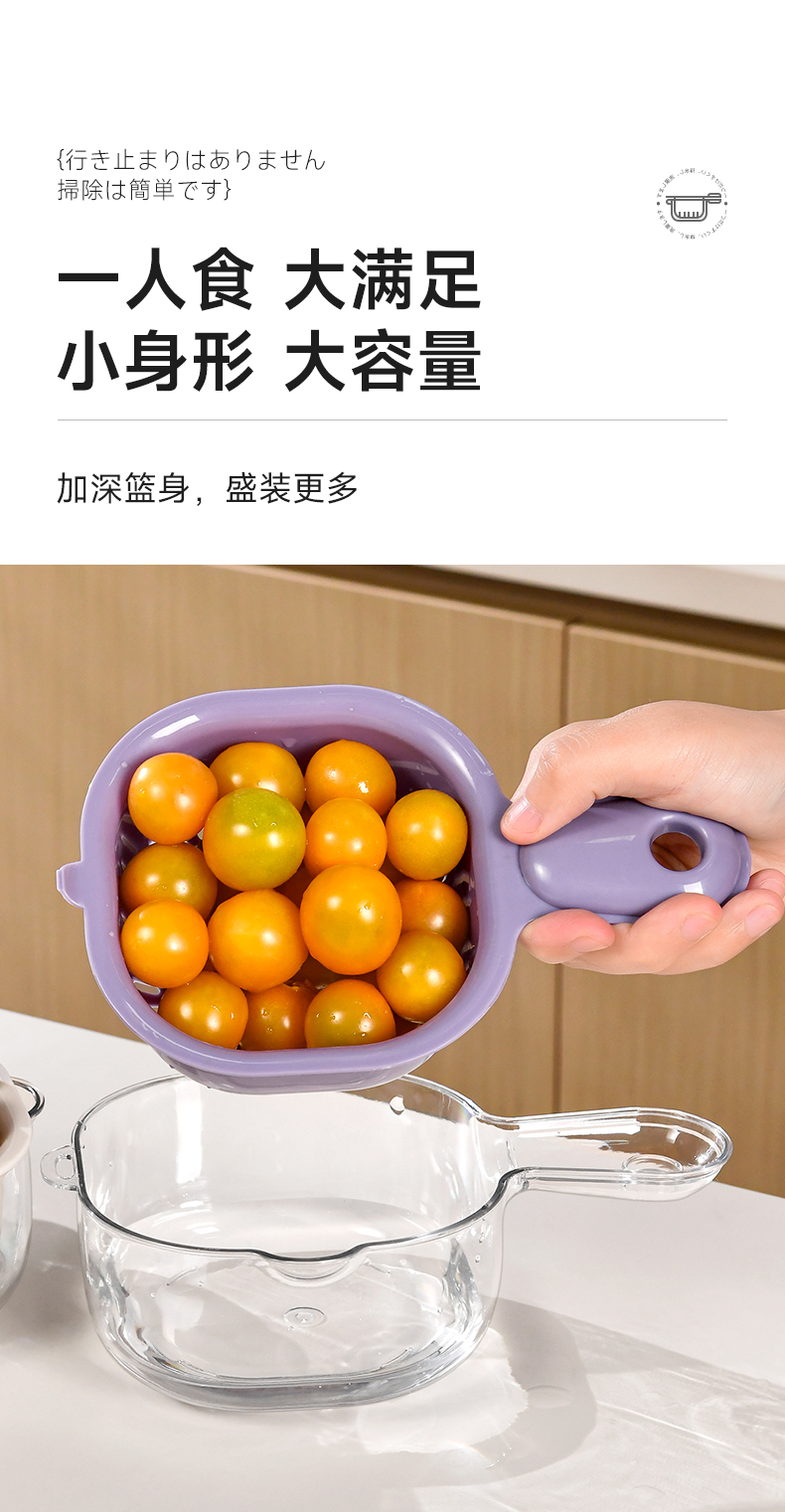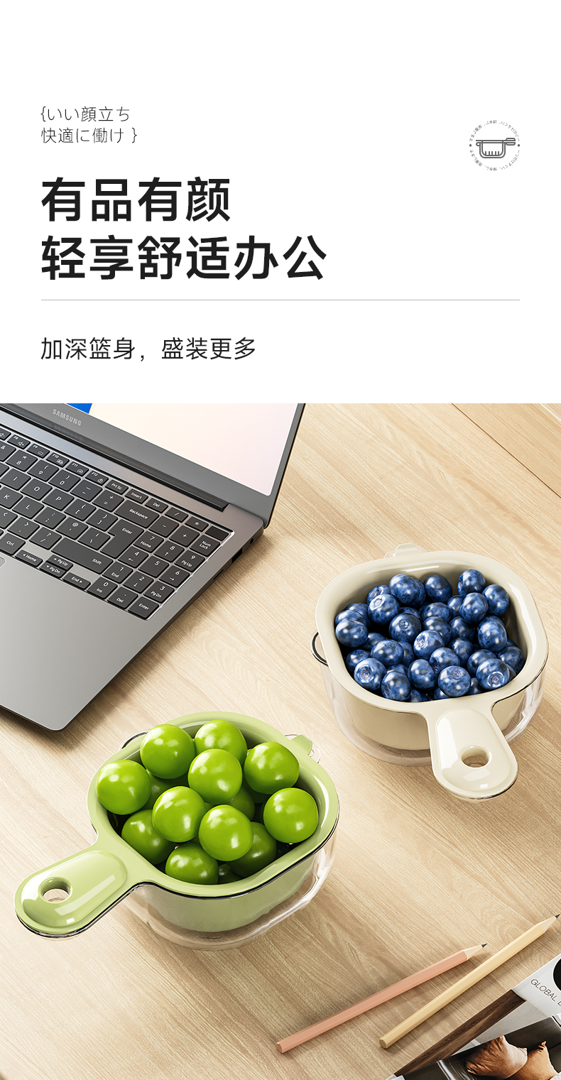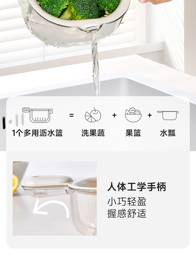 手柄沥水篮(软胶表情贴另拍) 双层洗水果神器沥水篮厨房家用新款客厅淋水篮精致小果盘