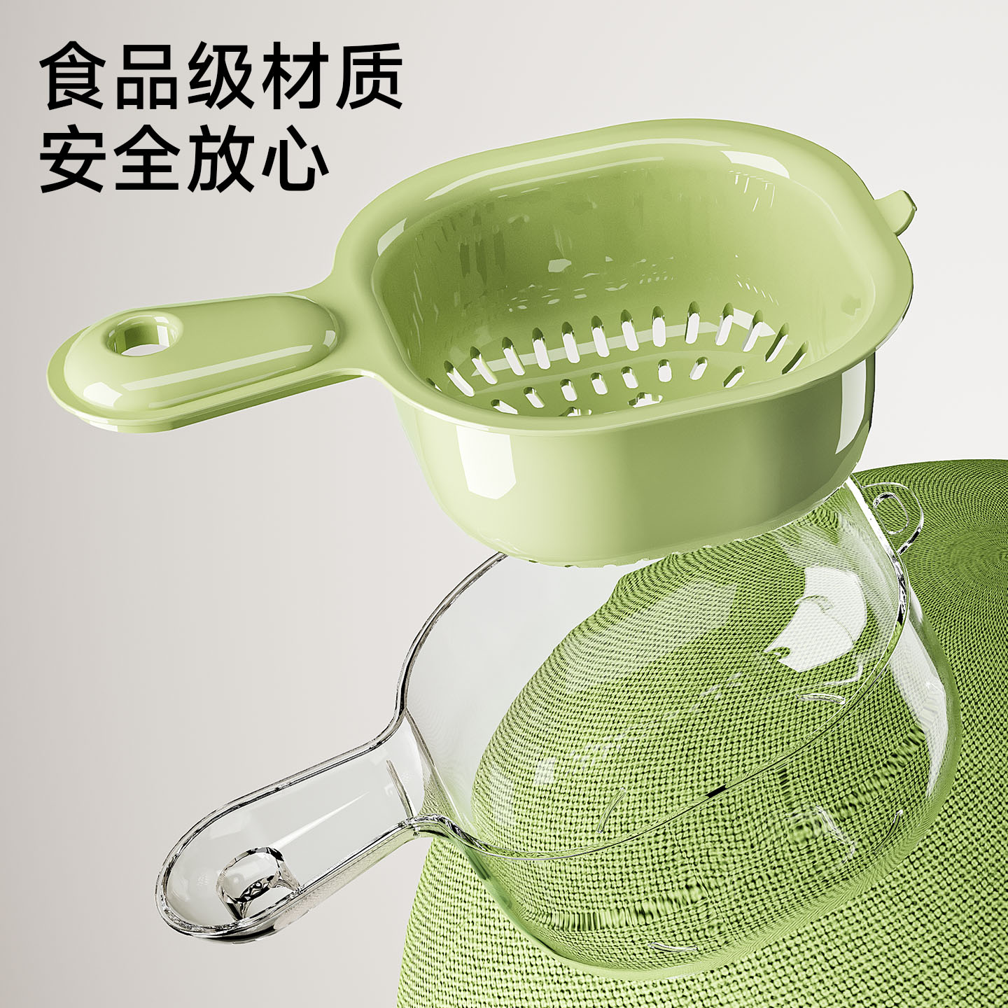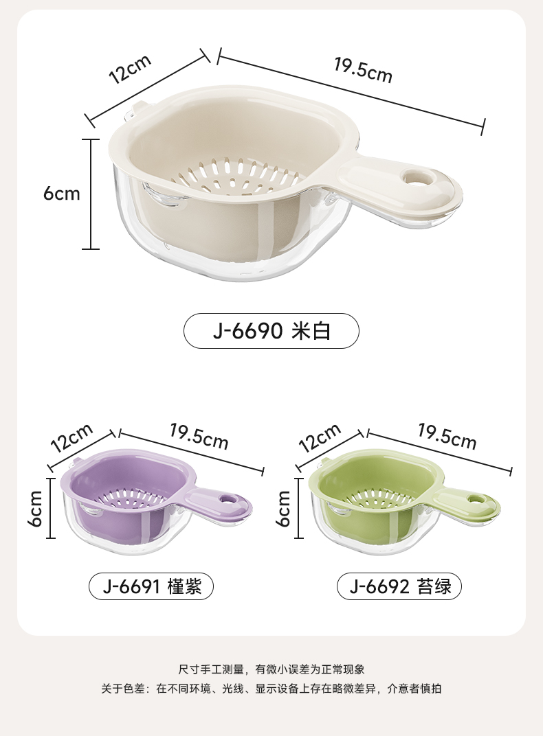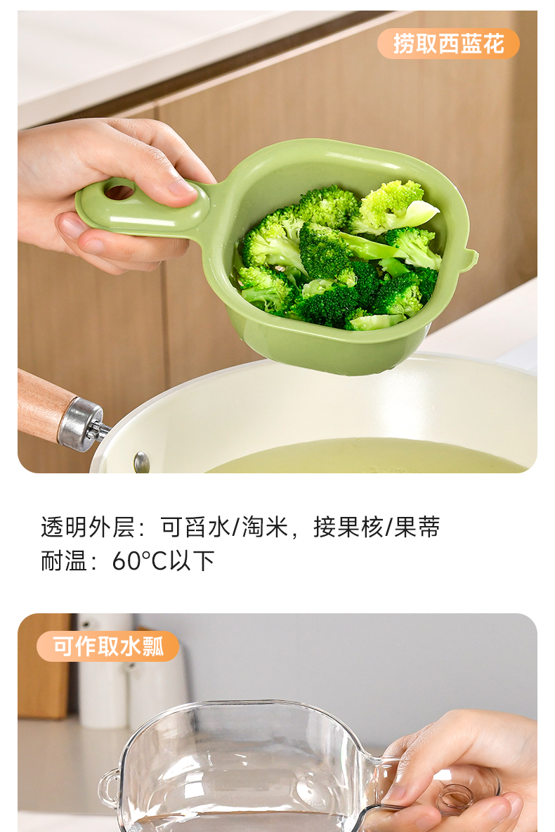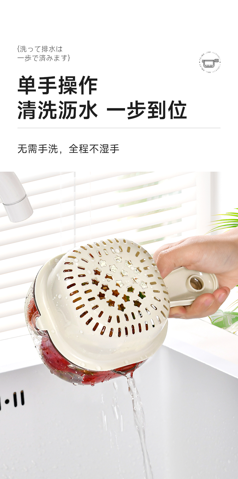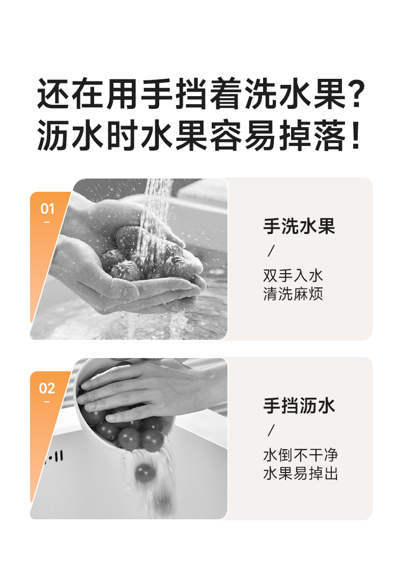 手柄沥水篮(软胶表情贴另拍) 双层洗水果神器沥水篮厨房家用新款客厅淋水篮精致小果盘