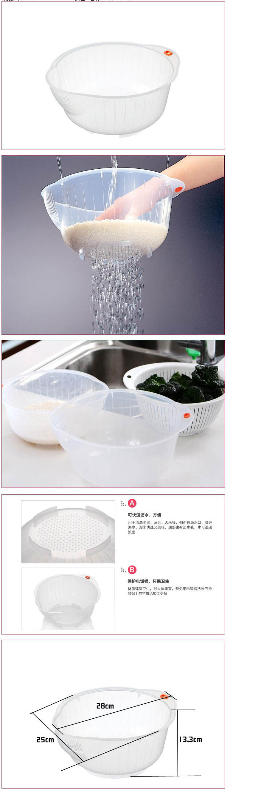大号淘米篮淘米盆 耐冷、耐热温度:约-20度、约120度