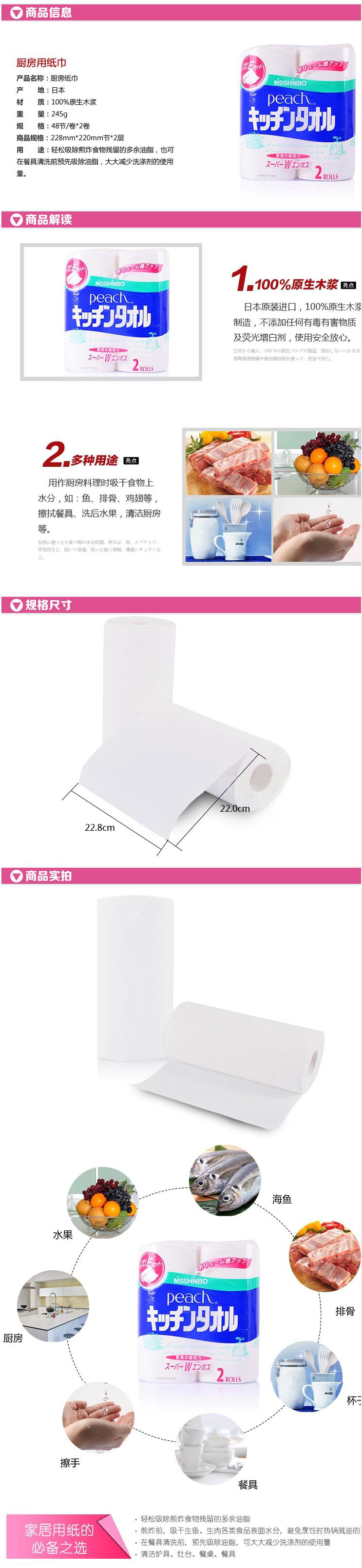 日清纺 厨房用卷纸 吸水去油 桶装纸巾 2卷装