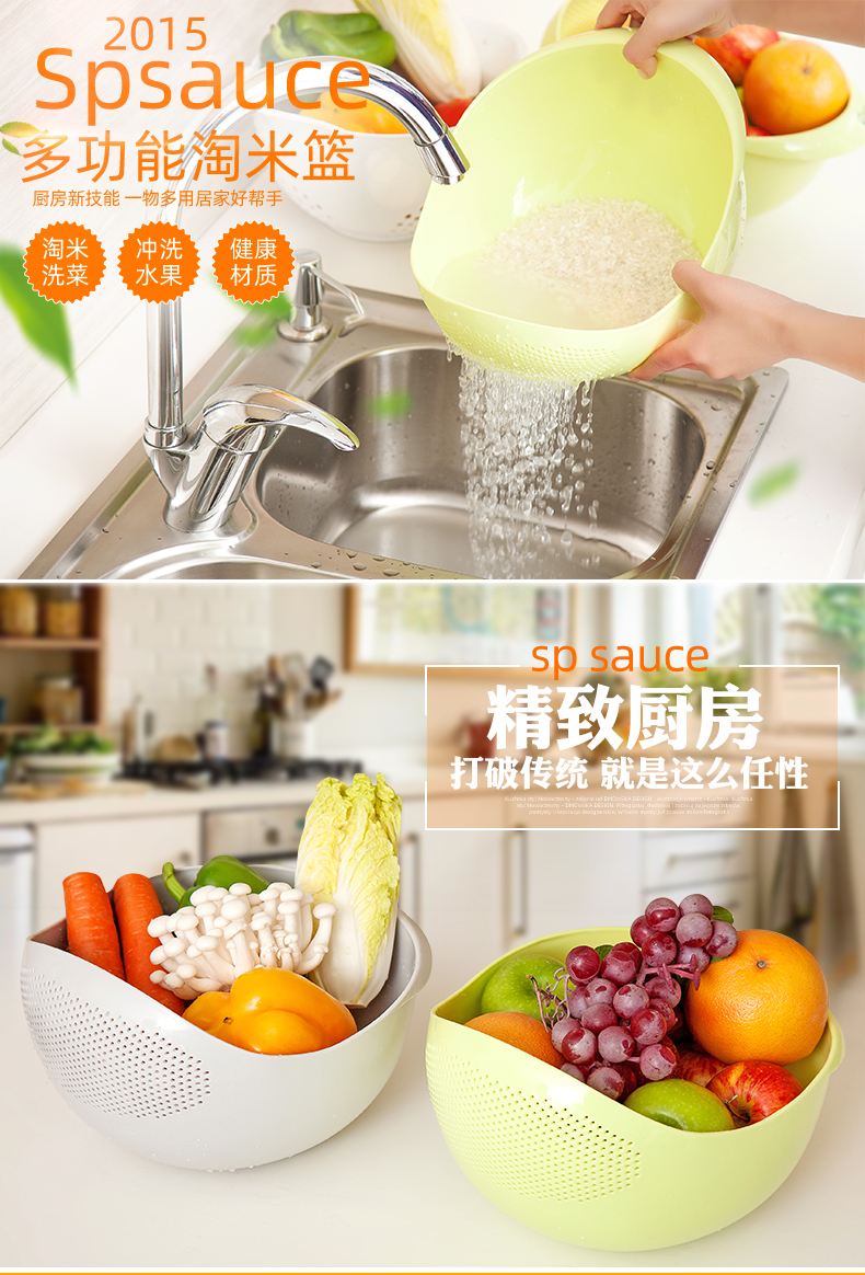 多功能加厚淘米篮 小号 洗菜盆沥水篮塑料家用水果盘漏盆洗菜篮创意淘米器厨房沥水盆