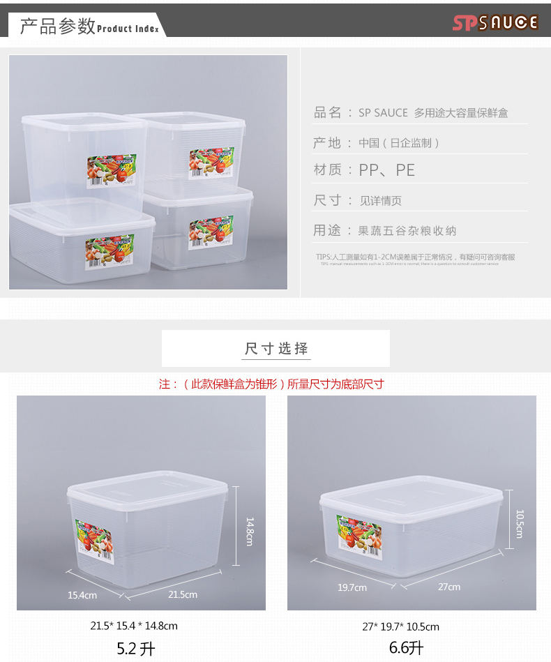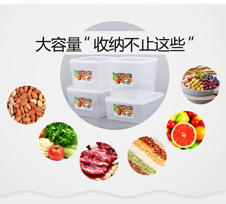 D多功能保鲜盒 5.2L 冰箱保鲜收纳盒食品盒家用长方形带盖塑料盒保鲜神器多功能密封盒