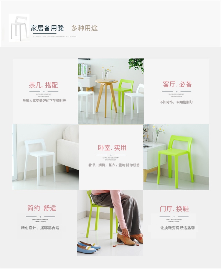 D 家居备用凳餐凳 日本SP换鞋凳 家居备用凳 简约日式小椅子 家用塑料餐凳