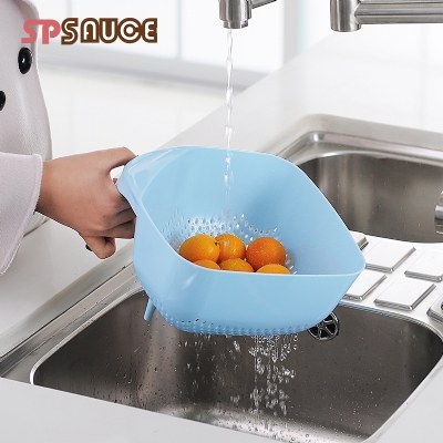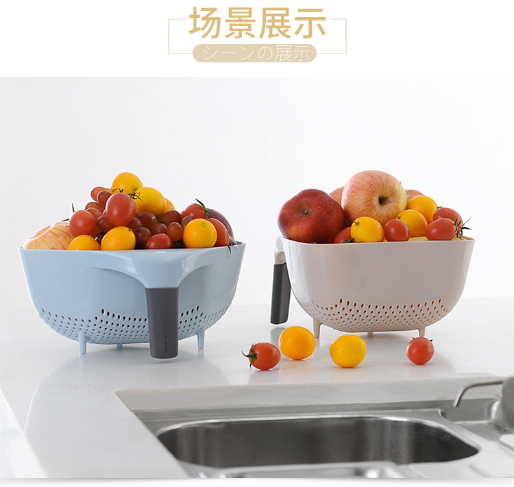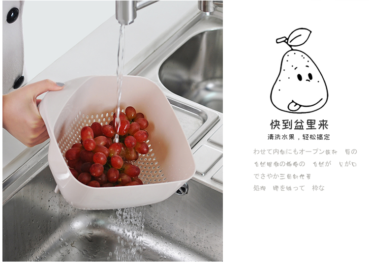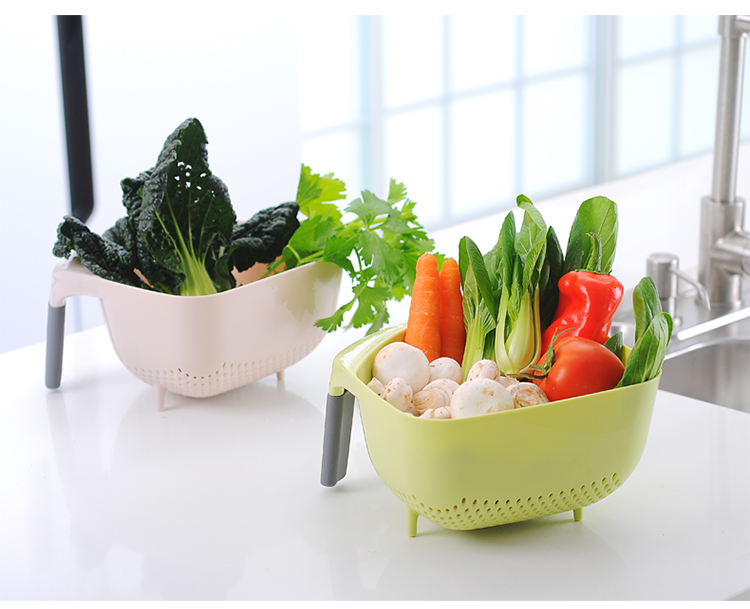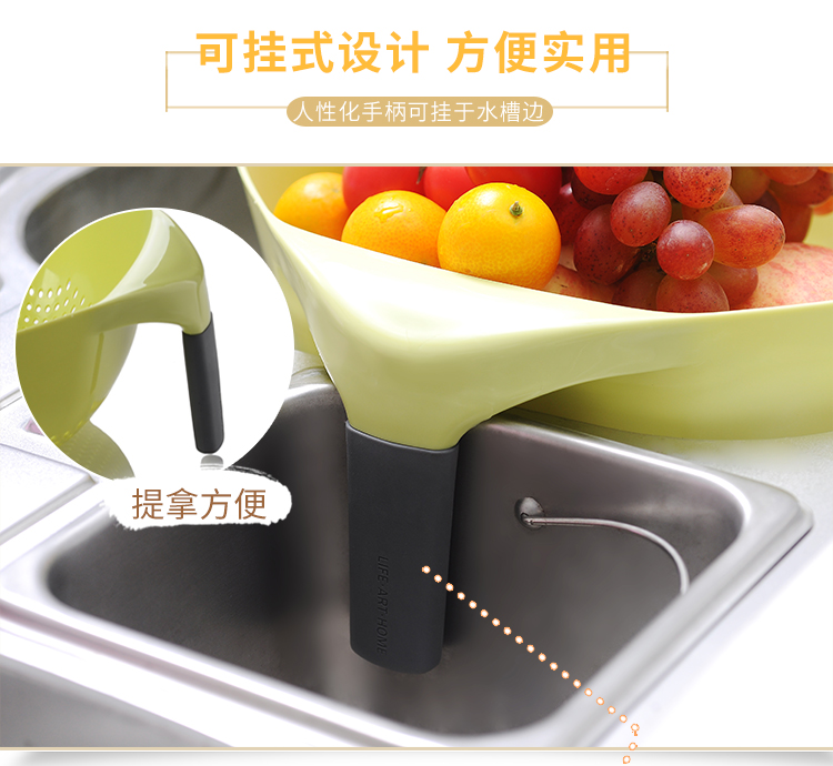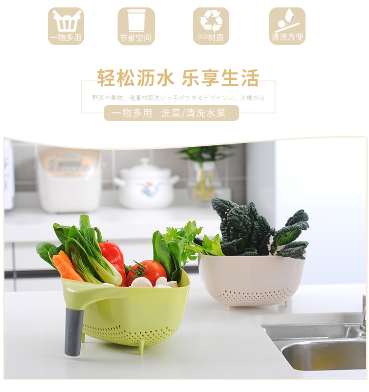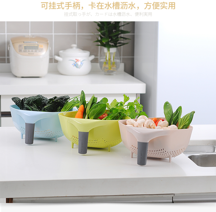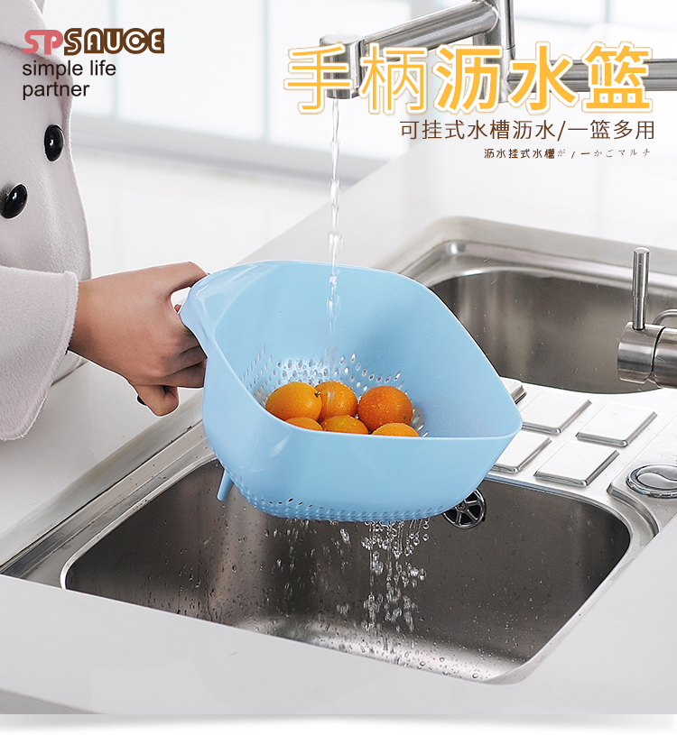 带手柄沥水篮 塑料水果蔬菜清洗多用筛篮子带手柄沥干沥水篮水果篮