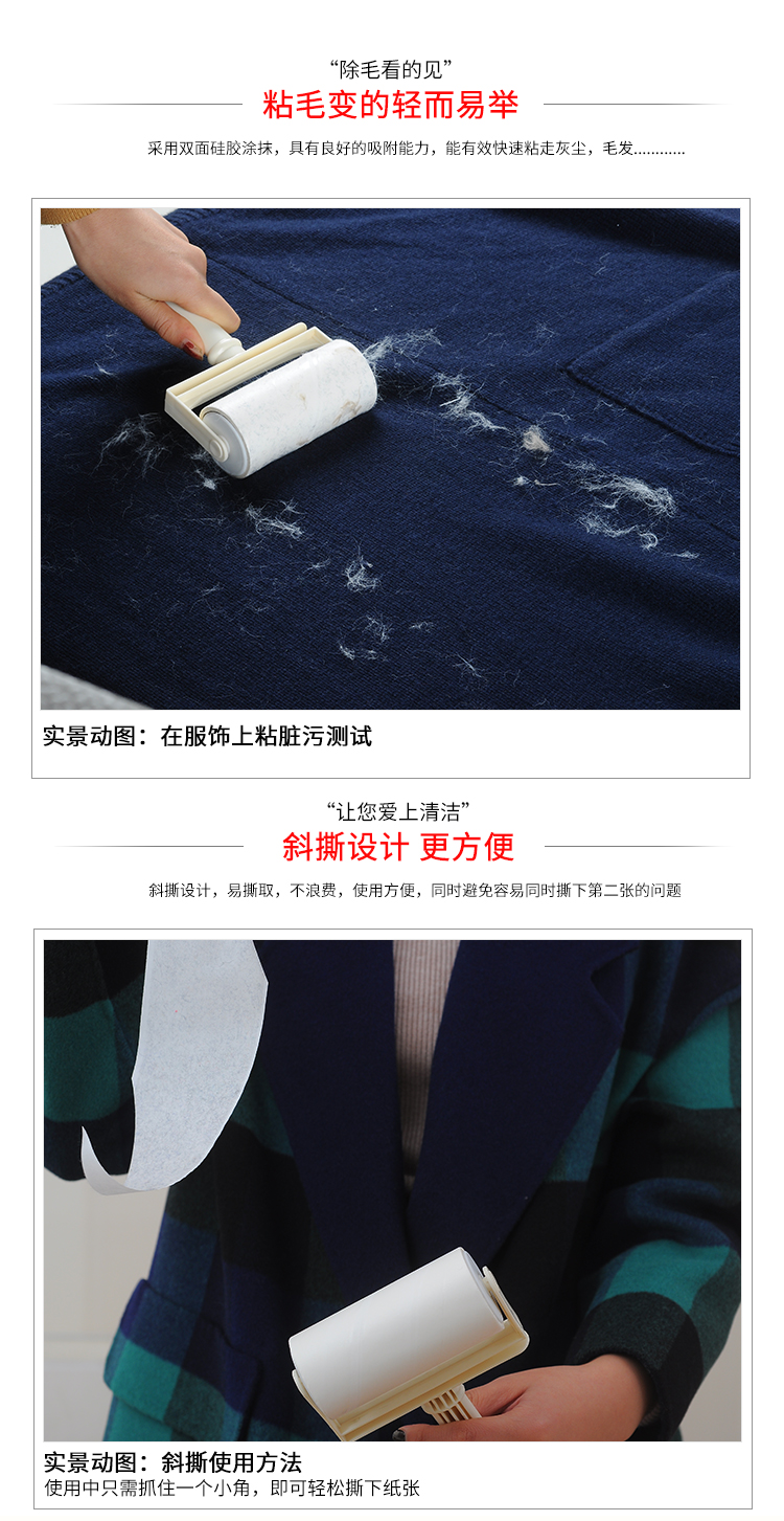 D 粘毛器大号-斜撕式 衣服粘毛器家用可撕式滚筒便携衣物滚刷子沾毛刷大衣刷毛器粘尘纸