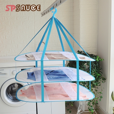 D 时尚多功能晒衣篮 椭圆三层 晒衣篮晾衣网晾晒网衣服平铺的网兜家用晾袜子神器毛衣专用晾衣架