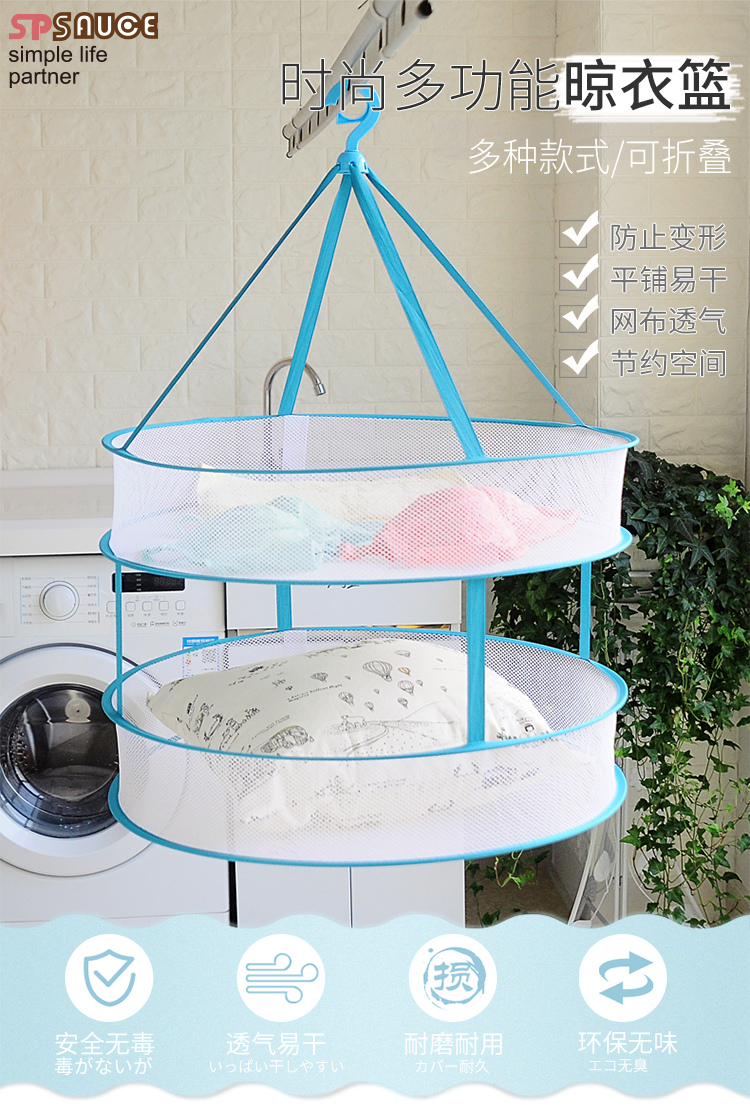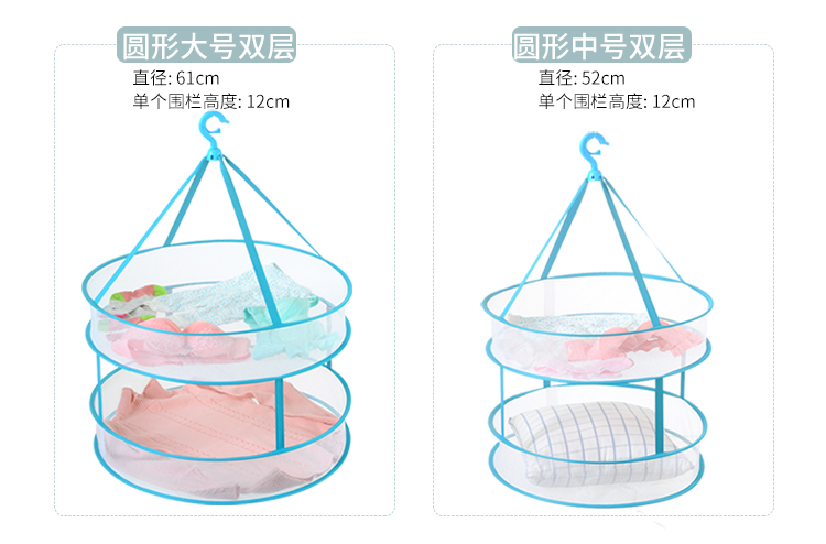 D 时尚多功能晒衣篮 圆形双层小号 时尚多功能圆形单层双层大小号长方形晾衣筐防风防变形衣架晒衣篮