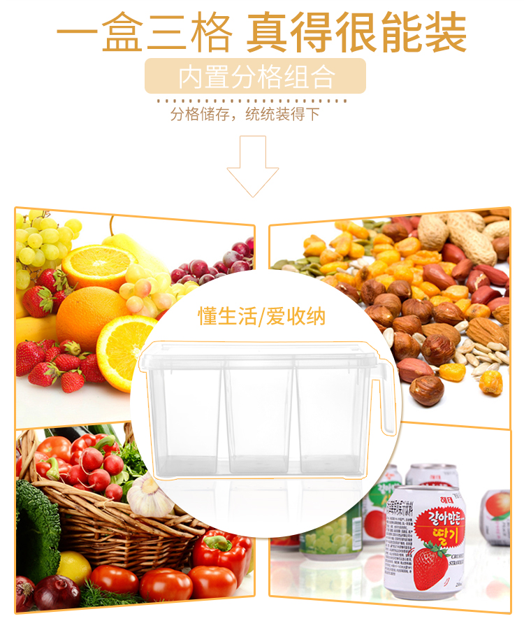 D 手柄分格收纳盒 收纳筐家用桌面置物篮厨房菜篮子浴室杂物高位整理零食盒