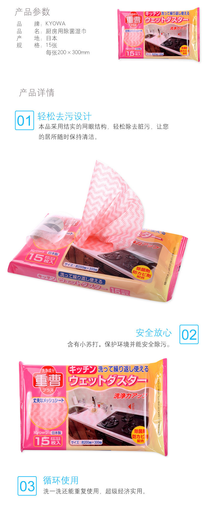 厨房去油污清洁湿巾 含小苏打可重复使用