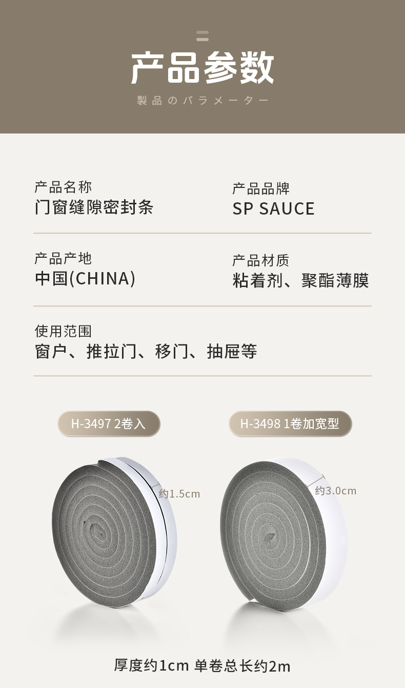 缝隙密封条(2卷入) 日式窗户隔音玻璃门密封条门窗缝隙密封贴防尘防风防噪音